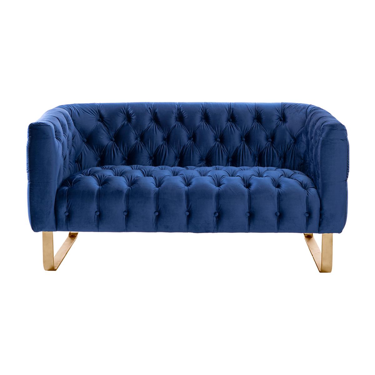 Grosvenor Two Seat Sofa - Navy Blue - Brushed Brass
