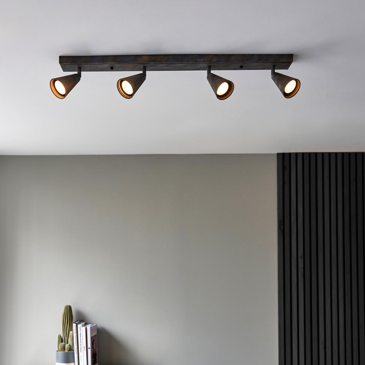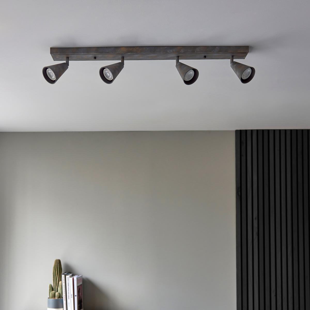 Add a rustic feel to your home with this stunning spotlight bar with a distressed grey-bronze finish, the Grove 4 light spotlight bar fitting would be perfect for the stylish, modern home and features adjustable shades. Perfect for lighting a range of rooms, this understated and contemporary fitting is fully compatible with dimmer switches and bulbs. With matching items available, the Grove range is ideal for creating a coordinated look.