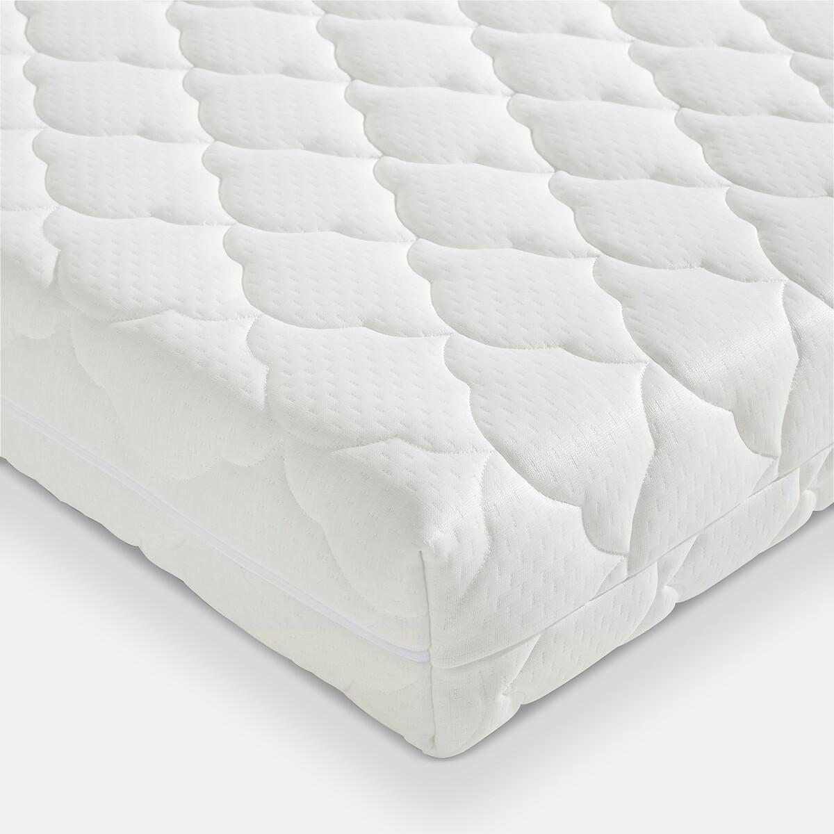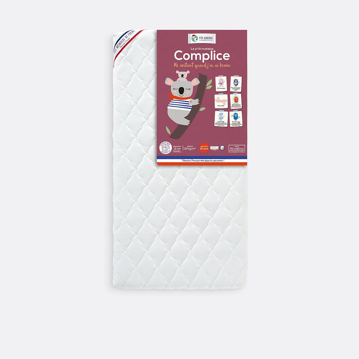 A Mattress for growing, evolving and accompanying your baby from birth. Reversible, the Complice growth mattress has 2 sides : 1 side 1st age, for babies under 9 months, in memory foam to limit pressure points,1 anti-dust mite and anti-bacterial polyurethane foam on 2nd age side. Product Details • Recommended thickness of 12 cm, giving your child optimum comfort • Suitable for all bed linen • This Mattress is made of 23kg/m³ polyurethane foam, a density recommended to provide effective support for your baby • 100% polyester ticking • Active substance in the treatment zinc pyrithione • Polyester quilting • Undercover 100% polypropylene • Removable and washable for perfect hygiene • Padding: 1 side in 45kg/m³ memory foam and 1 side in 23kg/m3 polyurethane foam • Anti-dust mite, anti-bacterial and anti-mould • Treated with active biocide treatment. The active substance is Zinc pyrithione Quality Info • 10 year guarantee. Made in France. Home Delivery. Your Complice growth mattress will be delivered to your home by appointment, even upstairs. ! Note! Please check that all access points are large enough to accommodate your delivery (doors, stairs, lifts).