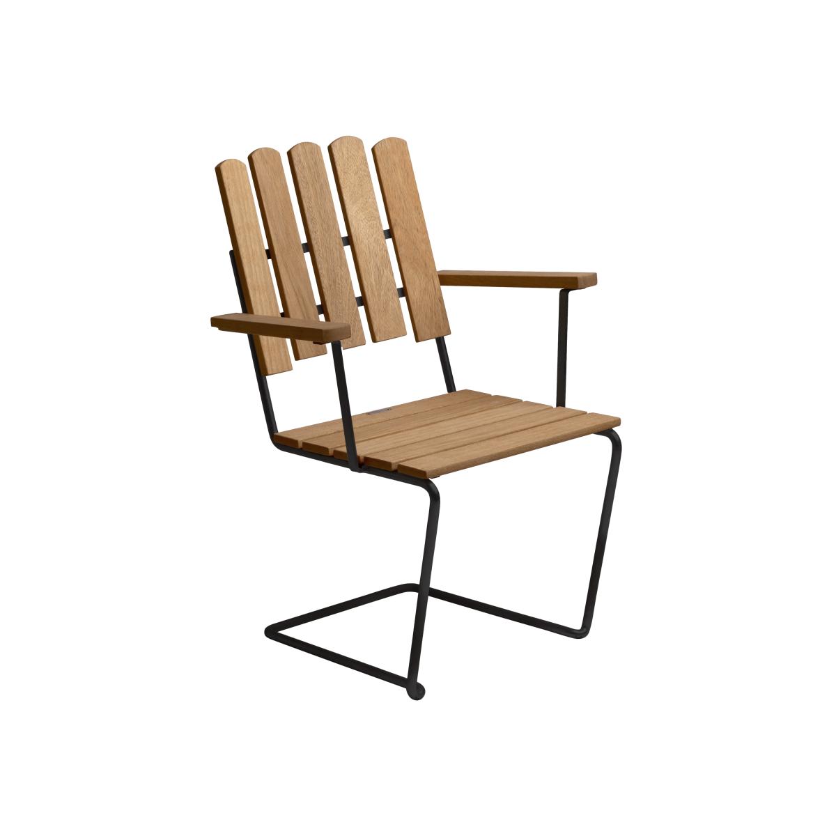 The A2 armchair from Grythyttan Stålmöbler is the workhorse that is perhaps most associated with Grythyttan. A2 was designed in 1930 by Artur Lindqvist and has since been present in arbors, at outdoor cafes, and in gardens. The frame made of solid spring steel ensures a long lifespan and the calming, well-known flexibility. The wood details are FSC- and PEFC-certified, and the armchair is fully recyclable. It is stackable, which means it takes up little space to store when not in use.