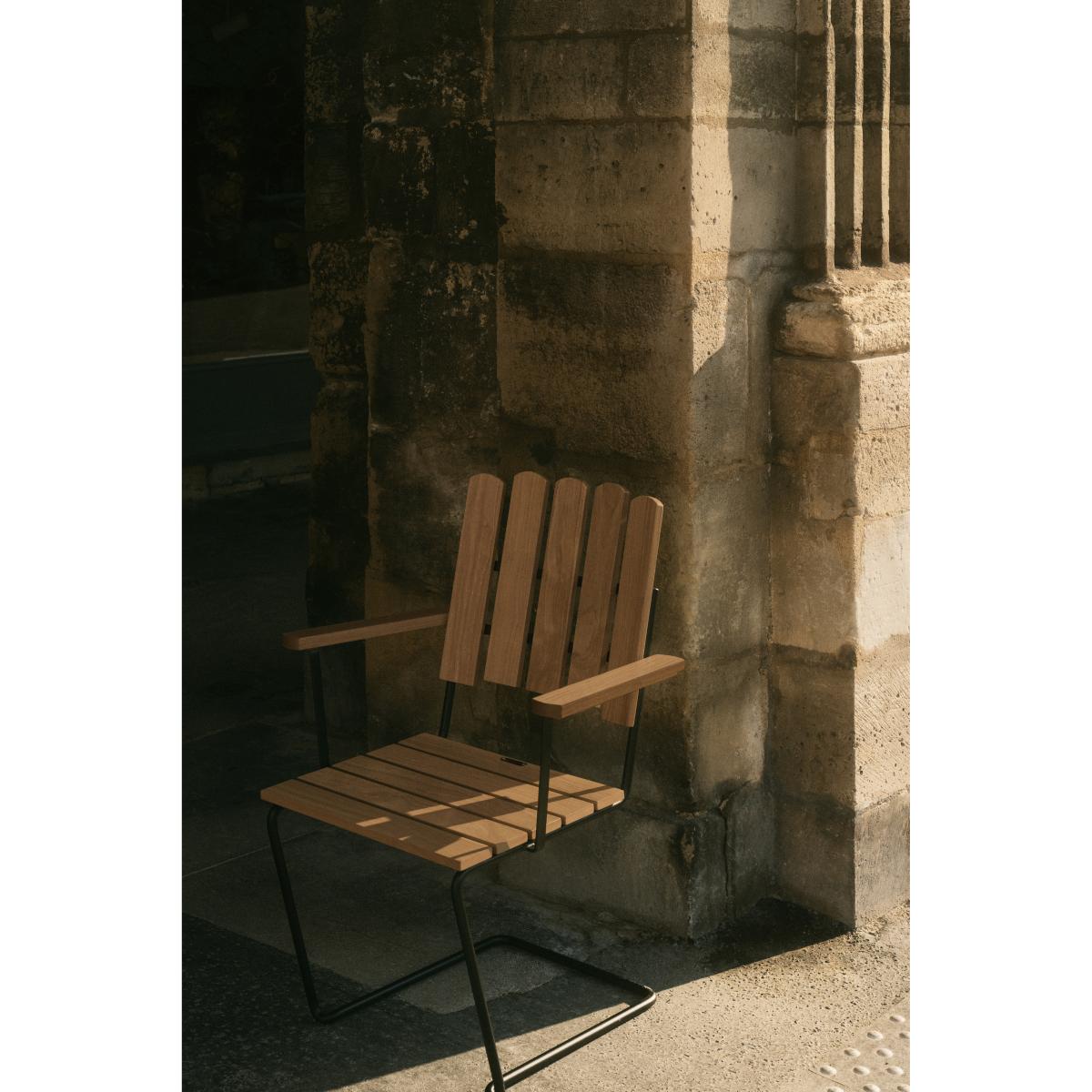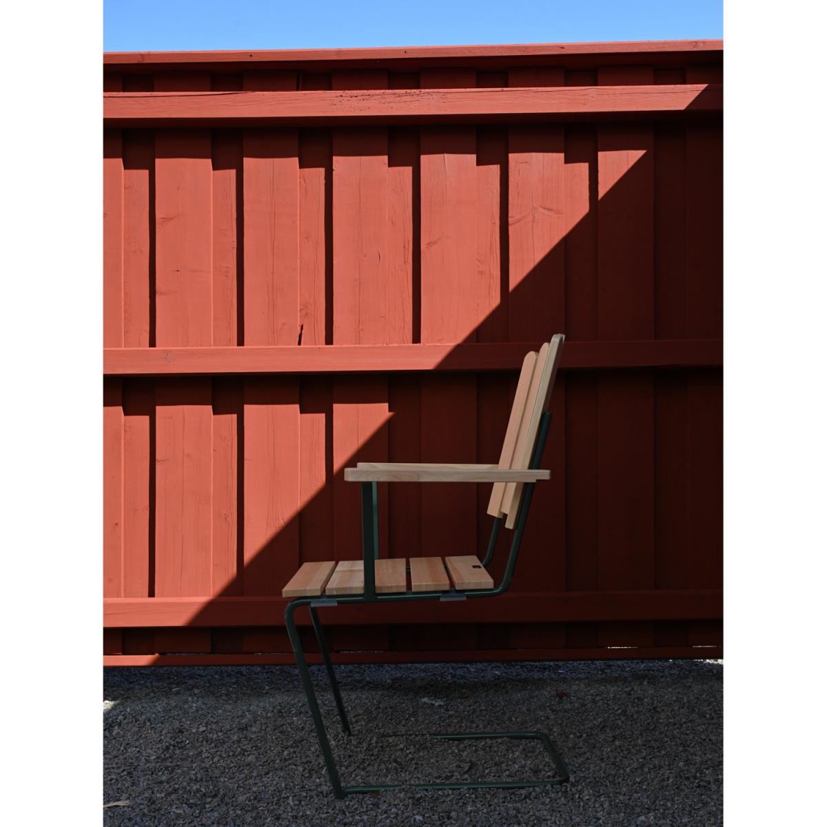 The A2 armchair from Grythyttan Stålmöbler is the workhorse that is perhaps most associated with Grythyttan. A2 was designed in 1930 by Artur Lindqvist and has since been present in arbors, at outdoor cafes, and in gardens. The frame made of solid spring steel ensures a long lifespan and the calming, well-known flexibility. The wood details are FSC- and PEFC-certified, and the armchair is fully recyclable. It is stackable, which means it takes up little space to store when not in use.