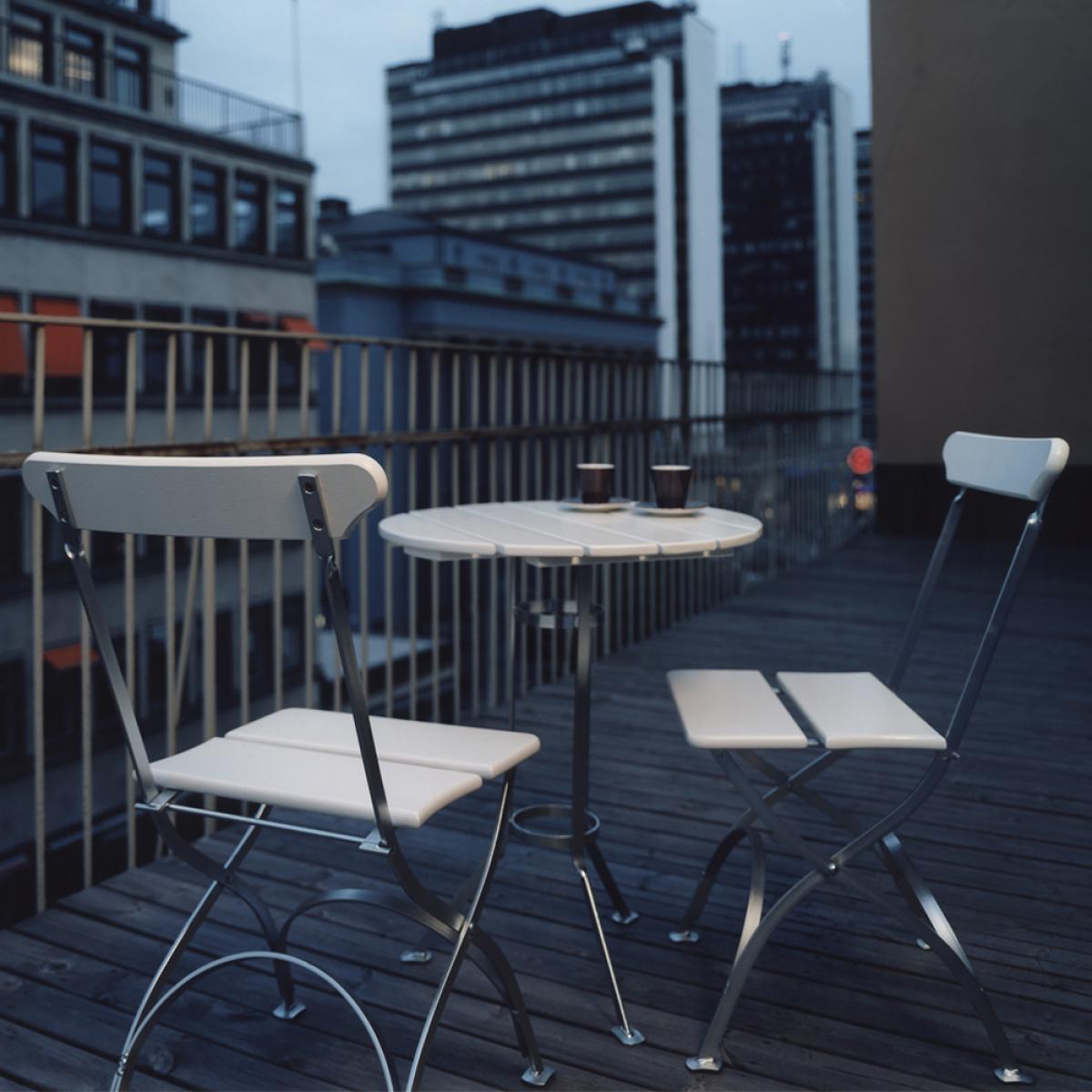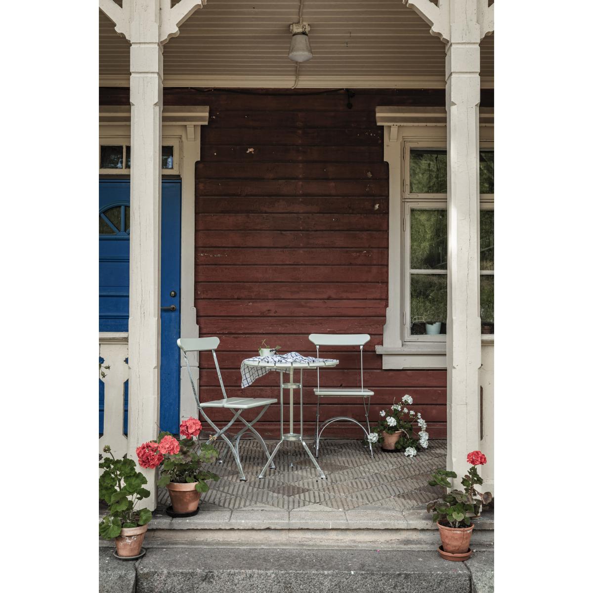 I love the Grythyttan Stålmöbler Bryggeri tripod table for its clean, minimalist design and durability. Its combination of white lacquer, oak detailing, and galvanised steel makes it versatile for both contemporary and rustic outdoor settings. It works particularly well in Scandinavian-inspired interiors or terrace spaces where simplicity and natural materials are key. Practical styling tips include pairing it with wicker or metal chairs for an eclectic look, or keeping it bare with a neat, large plant or lanterns for a streamlined aesthetic. This table's sturdy construction ensures it retains its charm even in high-traffic outdoor areas, making it both a practical and stylish addition.