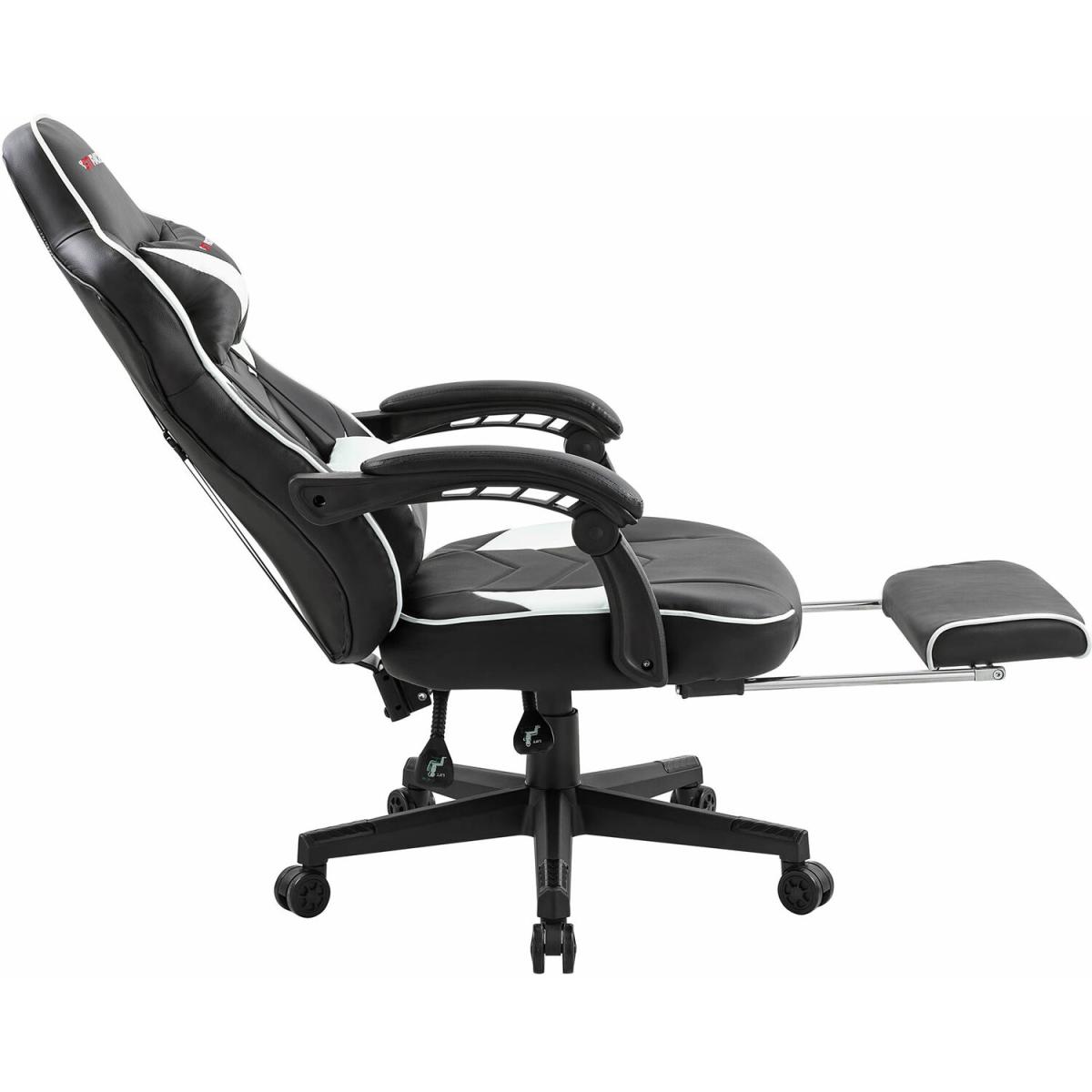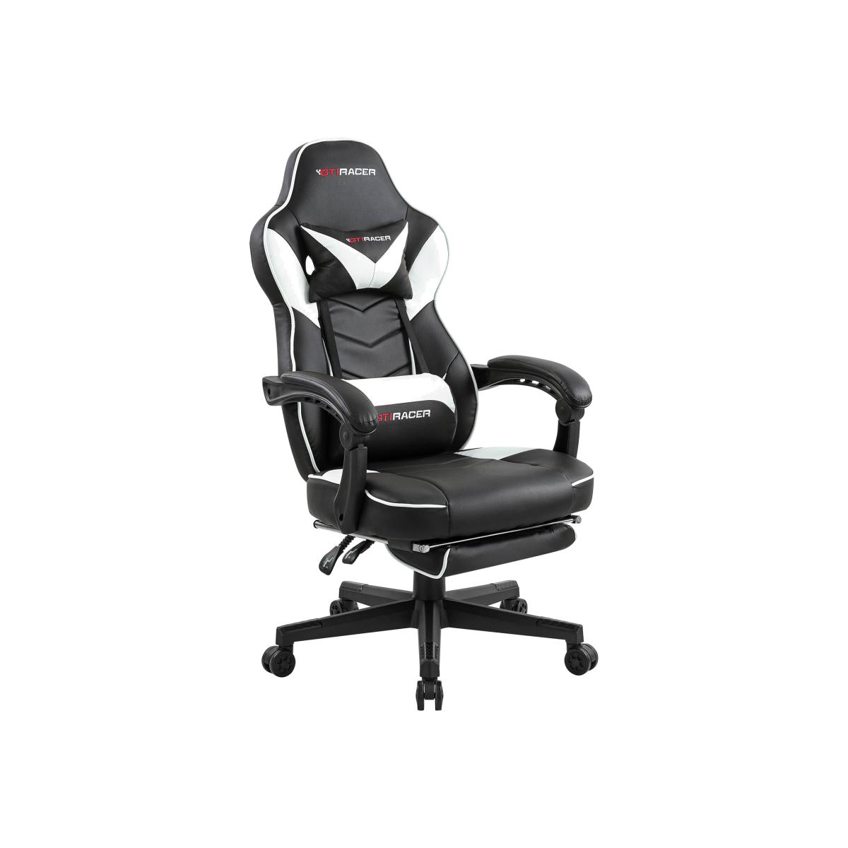 A sturdy and ultra-stylish seat for any home or workplace, the GTi RACER Office Chair is upholstered in faux leather with lumbar support and adjustable head pillow and fully extendable foot rest. Designed with a high back, supportive armrests, and an adjustable height, this desk chair provides complete comfort when sitting for long periods of time. Set on five castor wheels with a swivel function, Tilt and Recliner, this chair allows you to manoeuvre around your workspace with ease and is the perfect piece of furniture for any modern working or gaming environment.