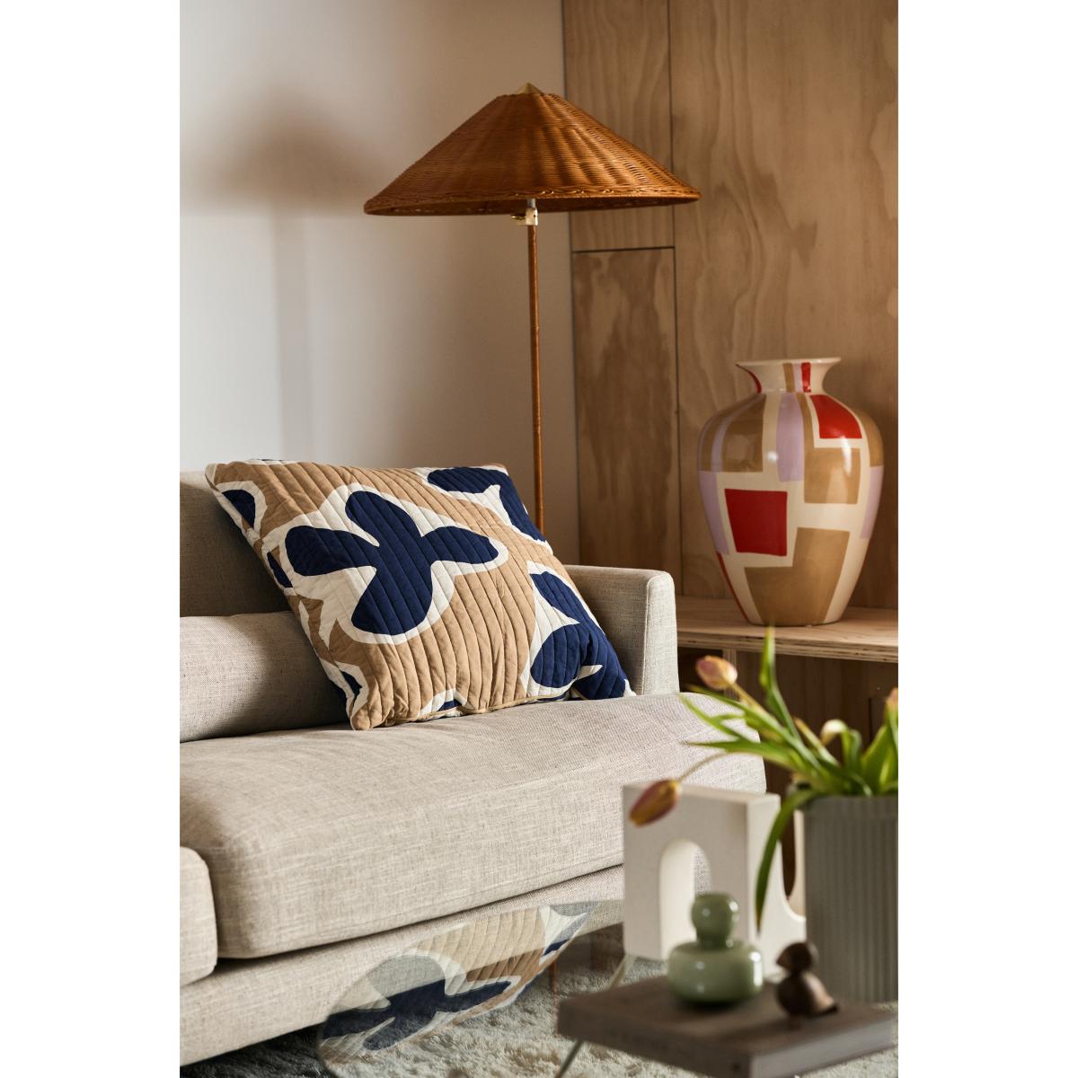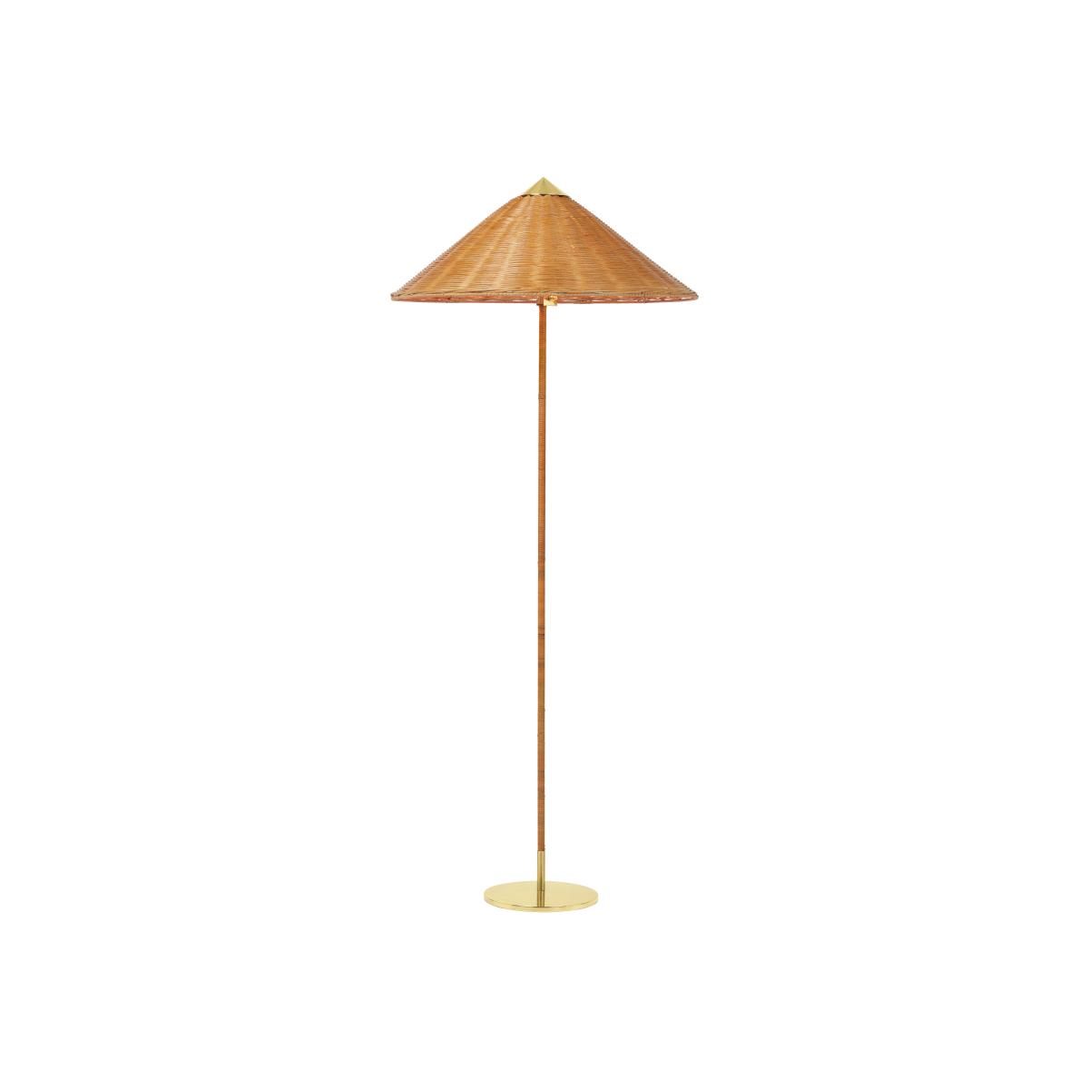 9602 floor lamp from Danish GUBI, designed by Paavo Tynell as early as 1935, is a stylish lamp with a brass base and a rattan frame. The lamp is also called "Chinese Hat" which refers to the conical lampshade that contributes to the lamp giving a calm and pleasant glow. The versatile floor lamp works excellently both in the reading corner and at the desk.