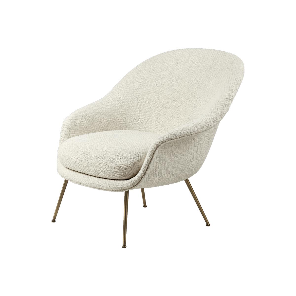 Gubi Bat Lounge Chair - low back conic base Dora boucle 0001-antique brass