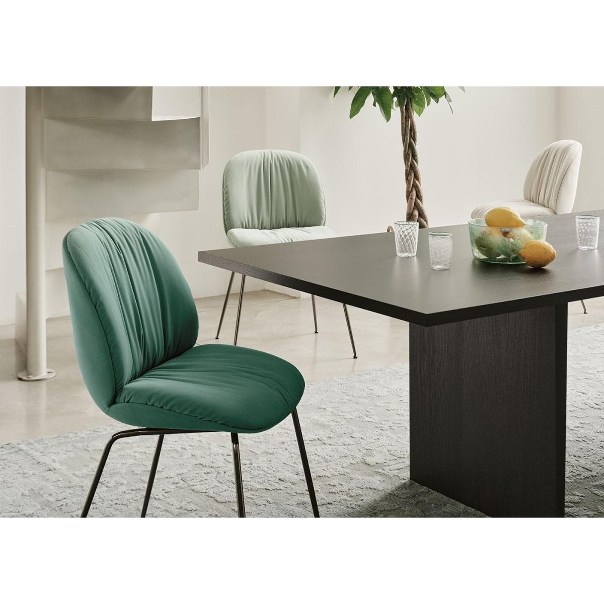 The Gubi Soft Dining Chair by Gam Fratesi reimagines the celebrated Beetle Chair in a more tactile and inviting form. Introduced in 2013, the design draws on the beetle’s rigid shell and soft interior, blending sculptural curves with supreme comfort. This version features a walnut veneer shell paired with a sleek black chrome base, creating a striking balance of warmth and modern elegance. A versatile dining chair with exceptional craftsmanship, it’s equally at home in private and professional spaces.