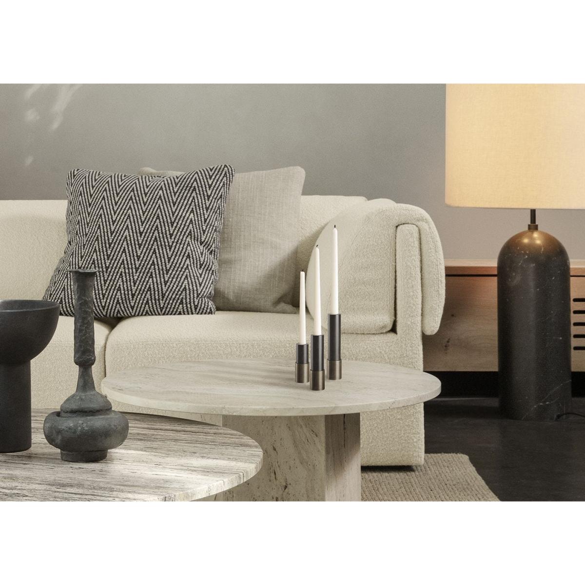 The heaviness of the candlestick is an unexpected contrast to the light design expression, giving it a sense of extravagance. The Candlestick is characterised by its contrasts, but with materials beautifully ageing together, they are united in a magic way.