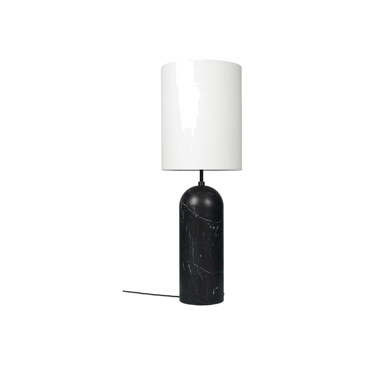 Gubi Fol19 Gravity Floor Lamp XL High Black Marble Base White Shade