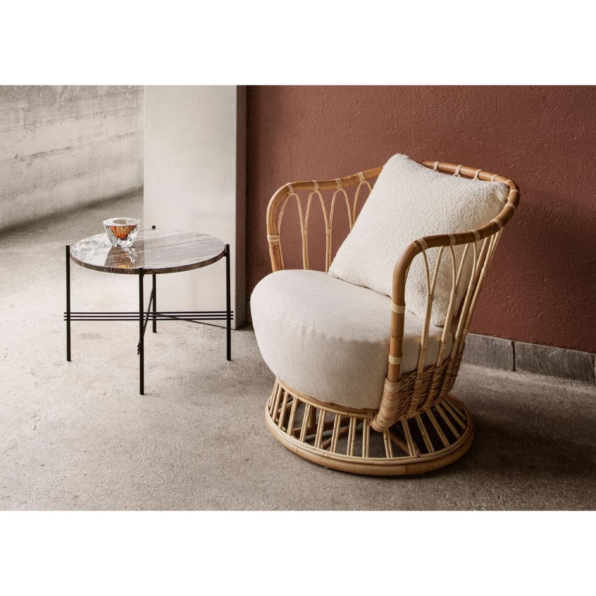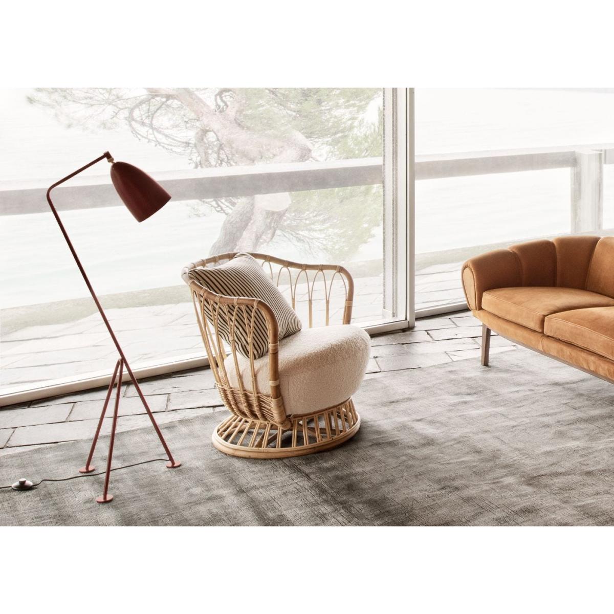 Inspired by the soft curves of pebbles and driftwood she would collect from the beaches of northern Denmark, architect and designer Kindt-Larsen’s envisioned a graceful refinement of the informal rattan lounge chair.