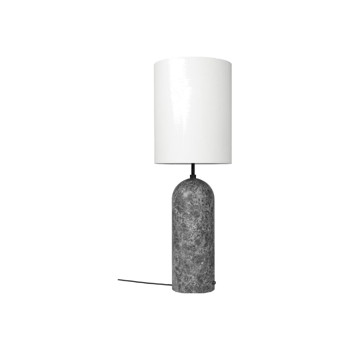 I love this lamp for its sleek, contemporary look with a sculptural touch, thanks to the grey marble base which adds a sense of weight and luxury. It works particularly well in modern or minimalist interiors, where its clean lines and understated colour palette can serve as a statement piece without overpowering the space. Practical styling tips include pairing it with neutral textiles and simple furniture to highlight the natural beauty of the marble, or using it in a reading nook or side table setup for both function and style. Its size and stature make it versatile for diverse settings, from a sophisticated living room corner to a chic bedroom bedside.