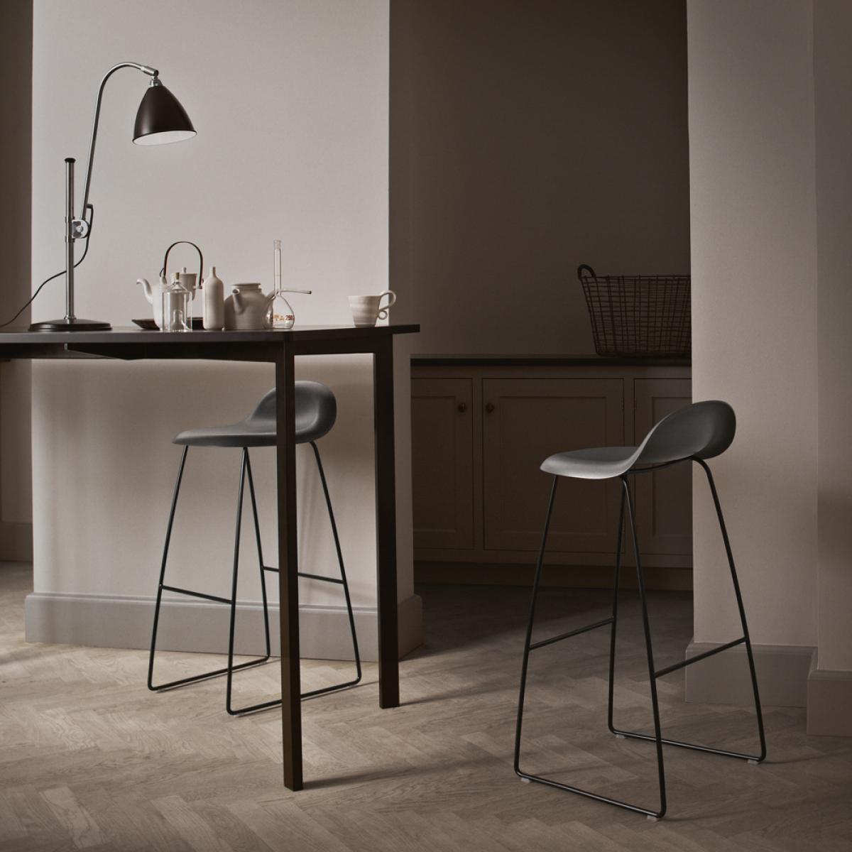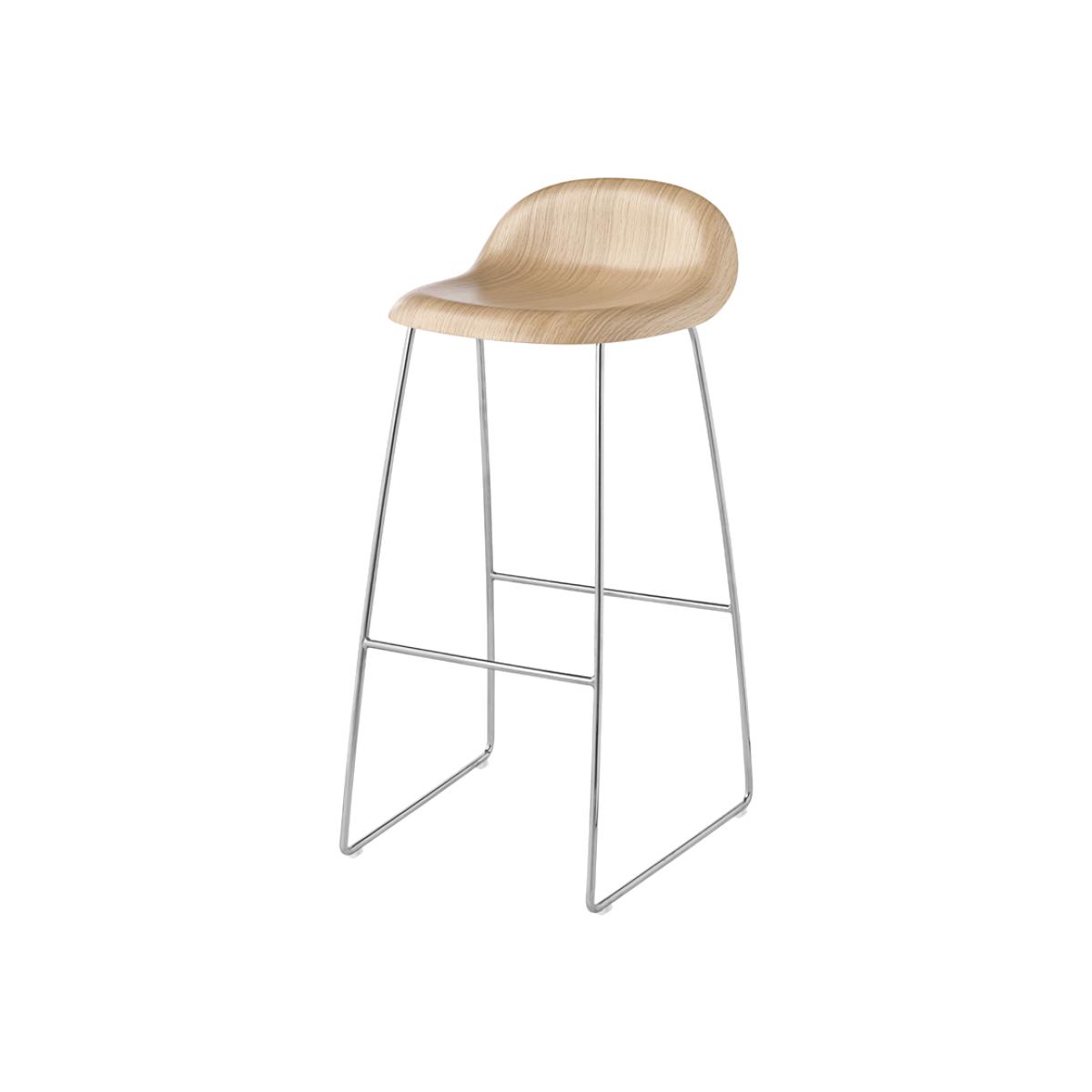 Gubi Gubi 3D barstool high Oak matte lacquered chromed steel sled base