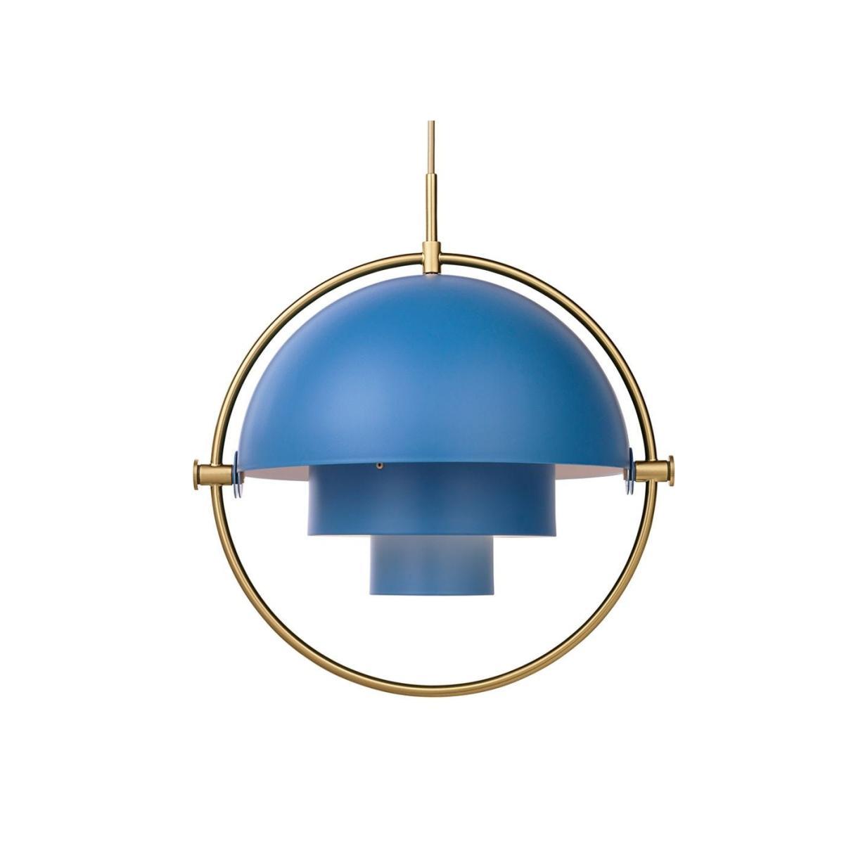 Louis Weisdorf first designed the brass Multi-Lite Pendant Light in 1972, marking a step away from his typical signature of using multiple repeating elements and reflecting his passion for diversity. The light is made up of two cylindrical shapes encompassed by a brass ring, surrounded by two quarter-spherical shades. The shades are adjustable so you can customise the Multi-Lite Pendant Light to suit your space.