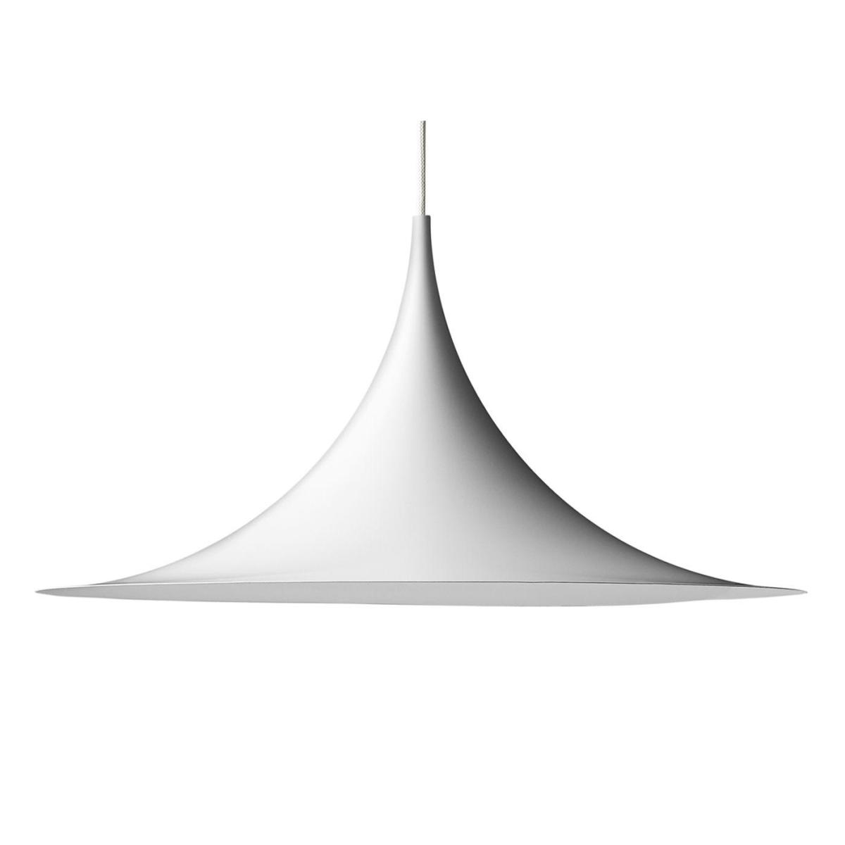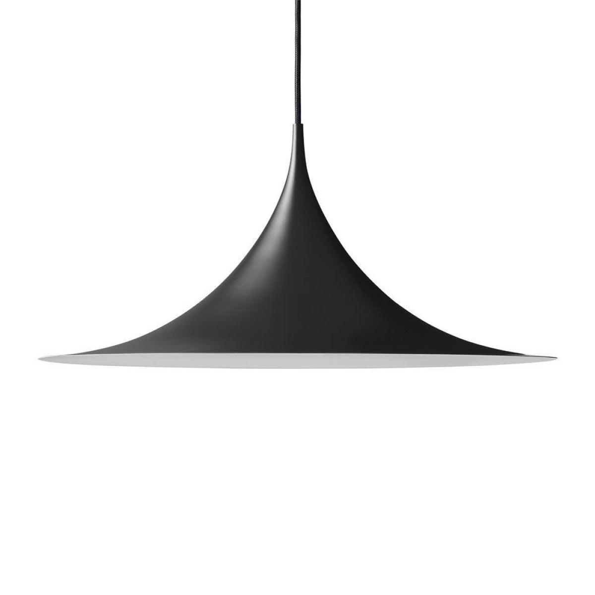 The Semi Pendant Light was designed in 1968 by Claus Bonderup and Torsten Thorup for a competition put on by the Royal Danish Academy of Fine Arts, School of Architecture. It won first prize and quickly became a best-selling Danish design with worldwide recognition. Its distinctive arch-shape and enamelled metal shade creates a diffused, cone-shaped light, ideal for over a dining table or kitchen work surface.