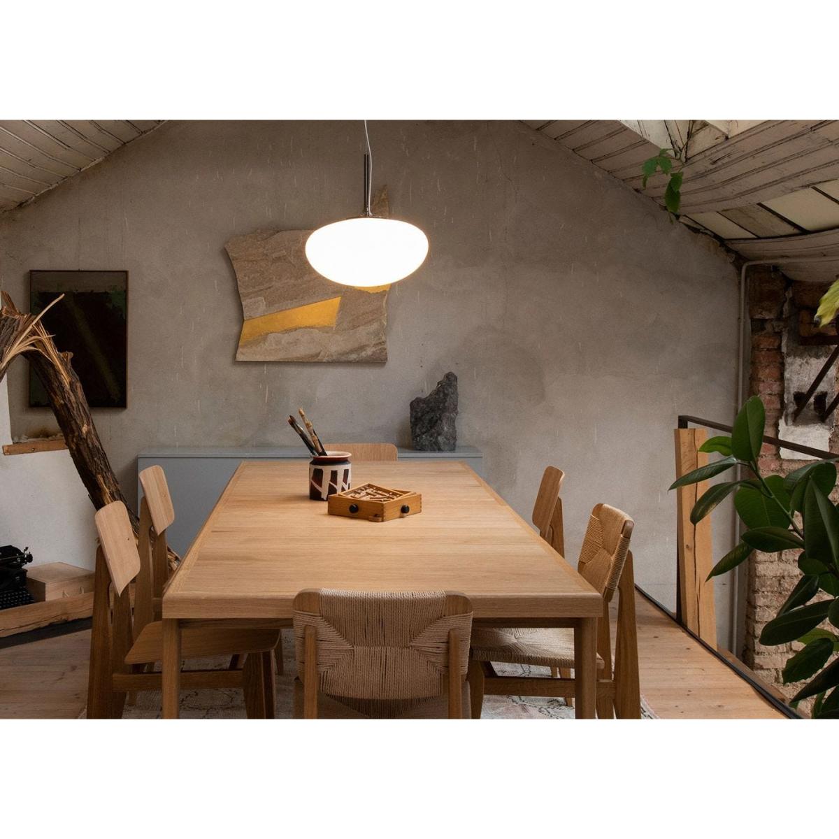 I’m a fan of the Gubi Stemlite pendant for its clean, mid-century silhouette and the way its opal glass softens glare. The slim black-chrome stem keeps the look lightweight, so it works equally well in a pared-back scandi living room, a contemporary kitchen island or a minimalist hallway. For best effect, hang one centrally over a side table or group three at staggered heights above a dining bench. Pair with matt black or brass accents to pick up the metal finish, and keep surrounding décor simple so the pendant remains a focal point.