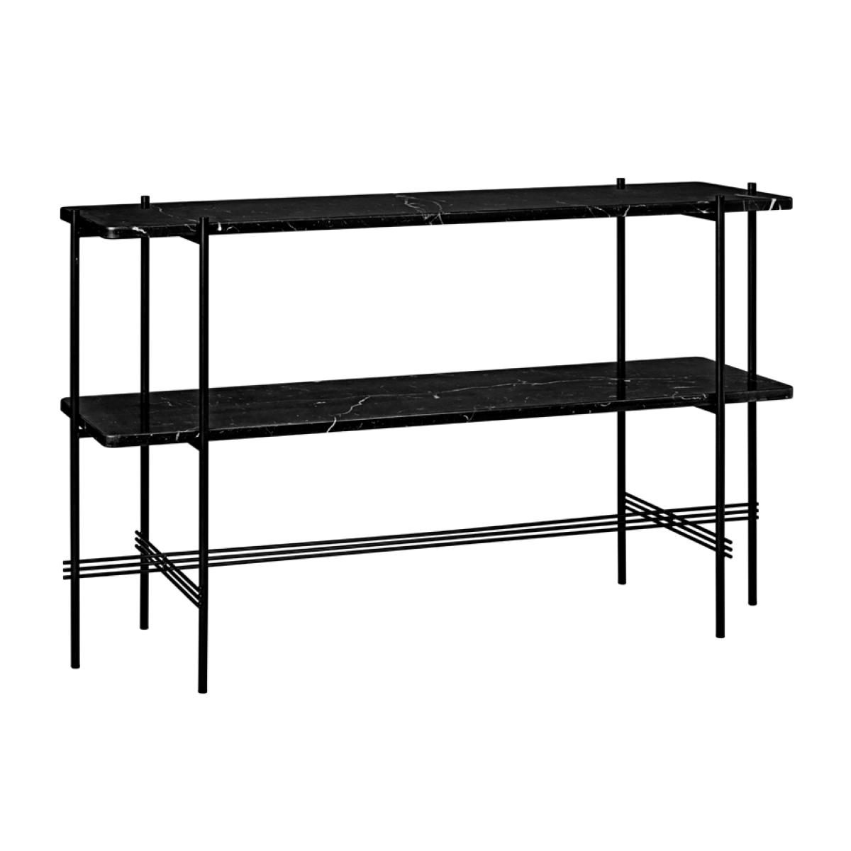 Gubi TS Console table 120x30x72 cm Black marquina marble black legs 2 marble shelves