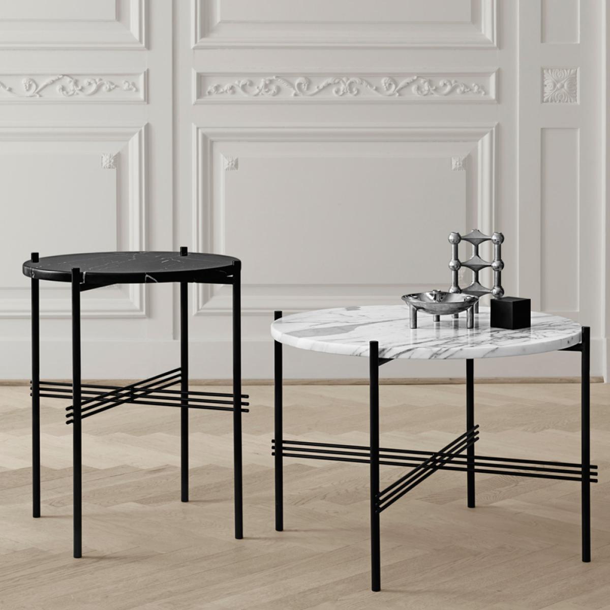 Gubi TS Round coffee table Green guatemala marble ø80 black stand