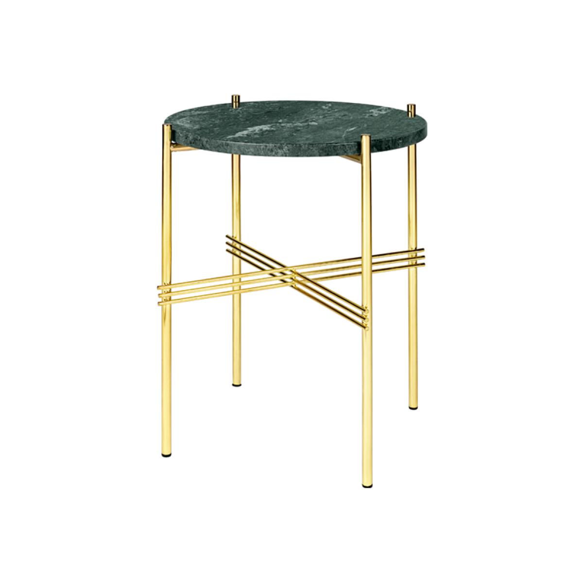 Gubi TS Round side table Green guatemala marble ø40 brass stand