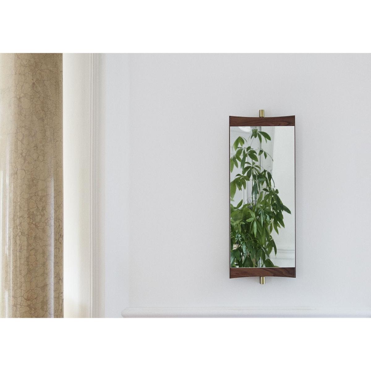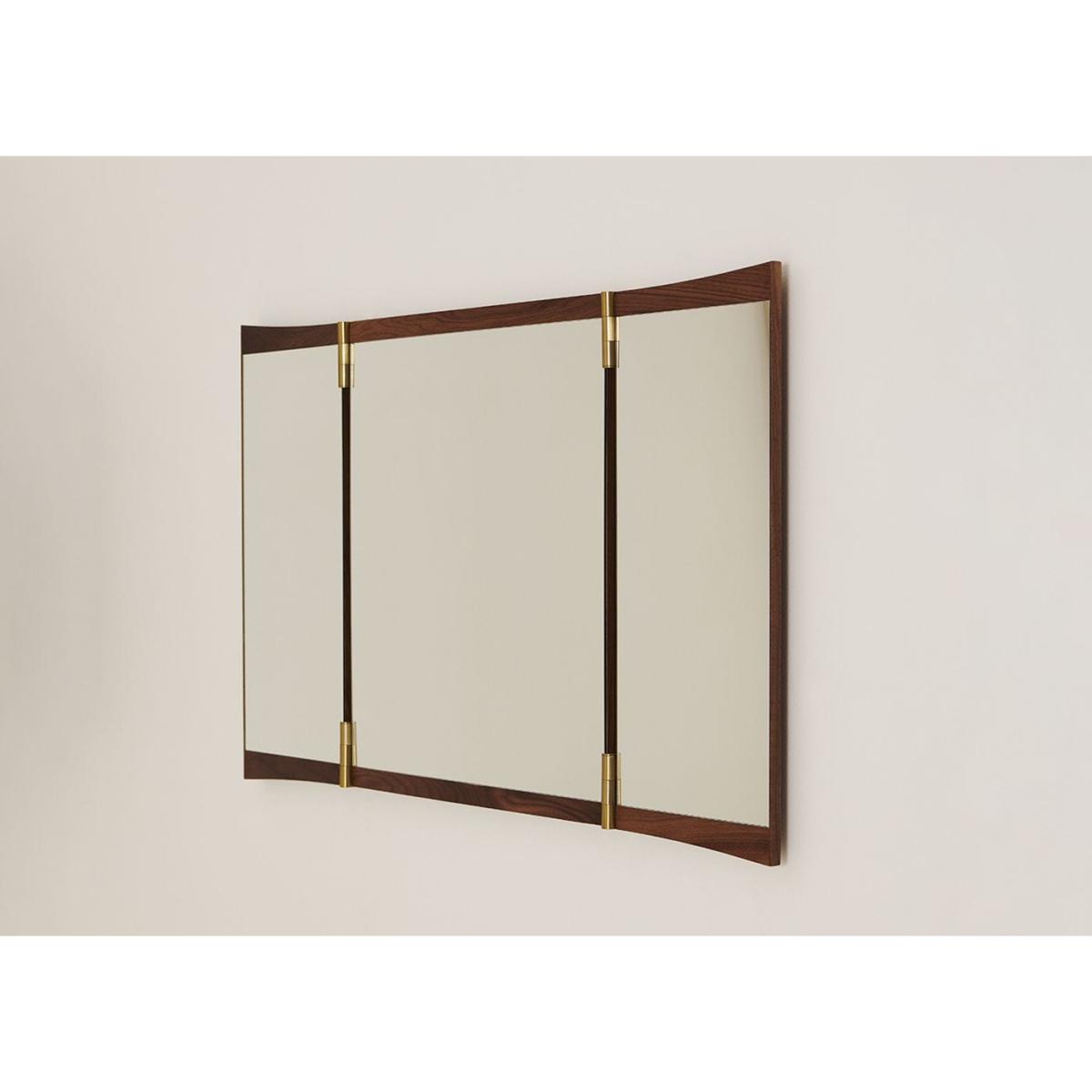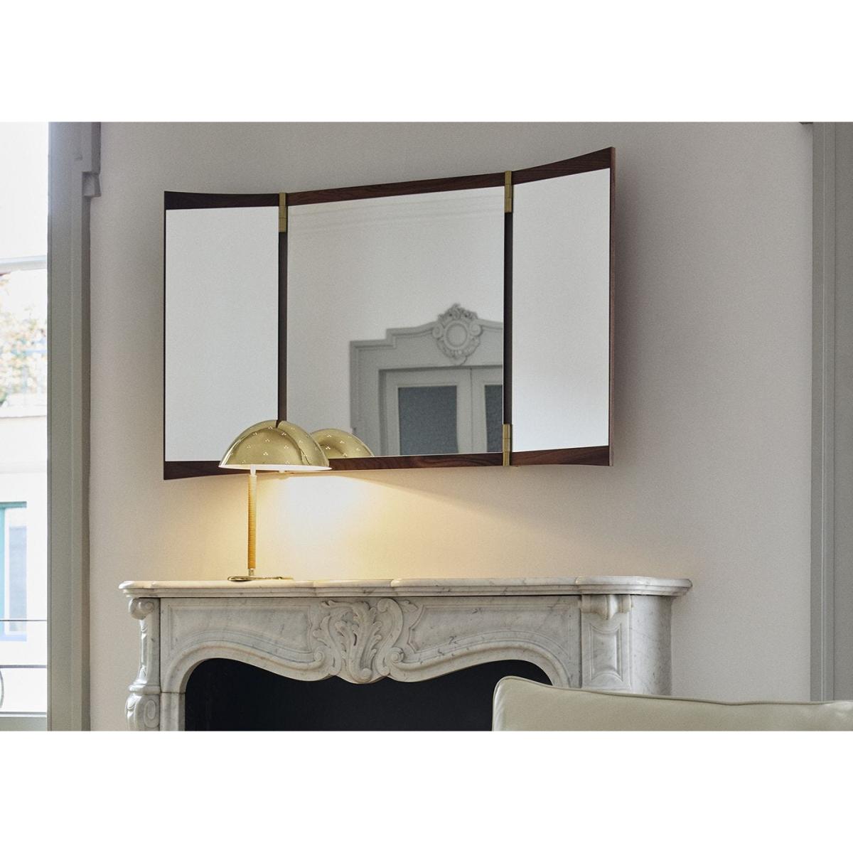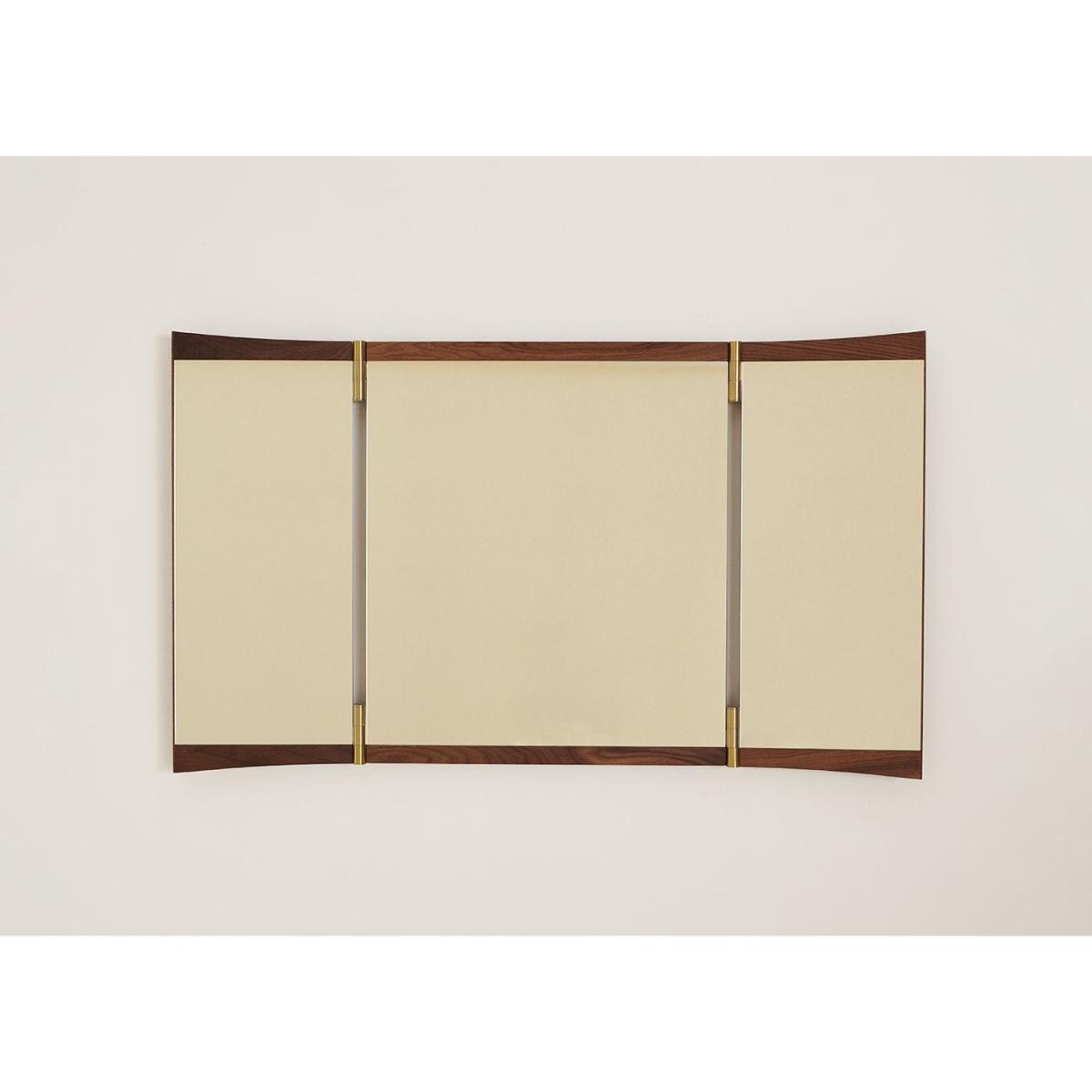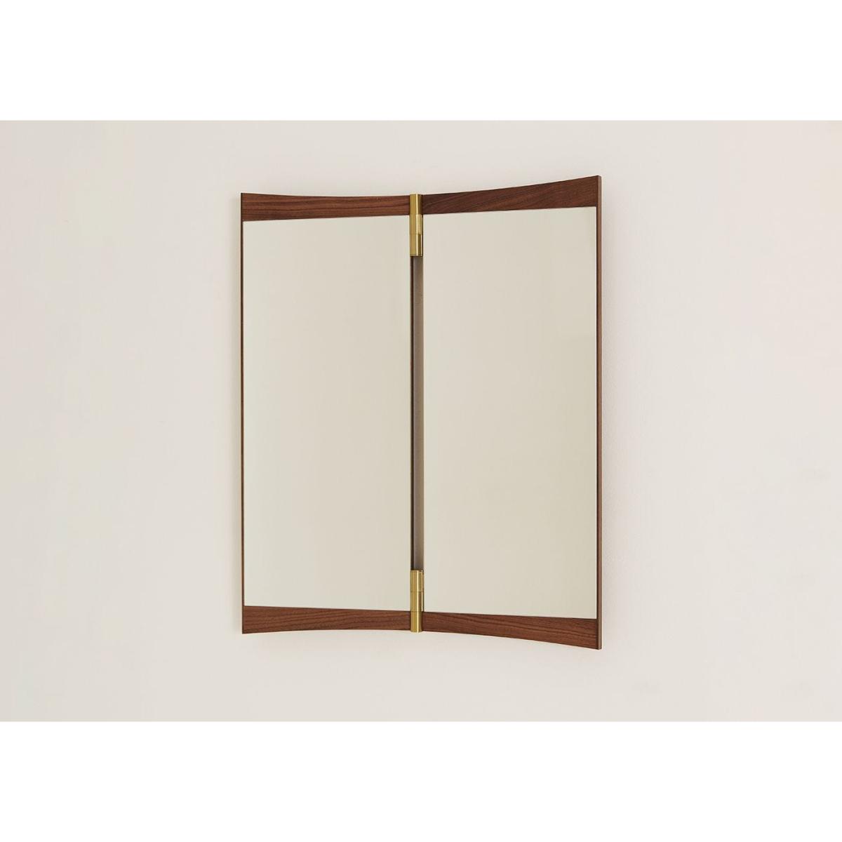 A contemporary echo of the 18th-century vanity-table mirror that gives it its name, the Vanity Mirror Collection is Gam. Fratesi’s second wall-mounted mirror design for GUBI. The collection comprises three variations – with one, two and three mirror panels, respectively. The design’s defining features are its warm walnut veneer and brass hinges. These allow the angle of the mirror to be adjusted, influencing the perspective it offers and the play of the light in the room. On the single-panel Vanity Mirror 1, the hinges permit a 15° rotation, whereas the 180° hinges on the Vanity Mirror 2 and Vanity Mirror 3 allow the panels to fold flat on top of one another, covering the mirror when not in use.