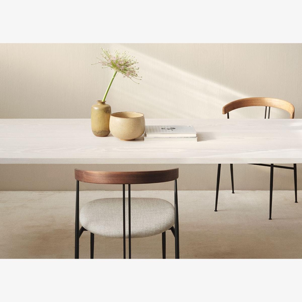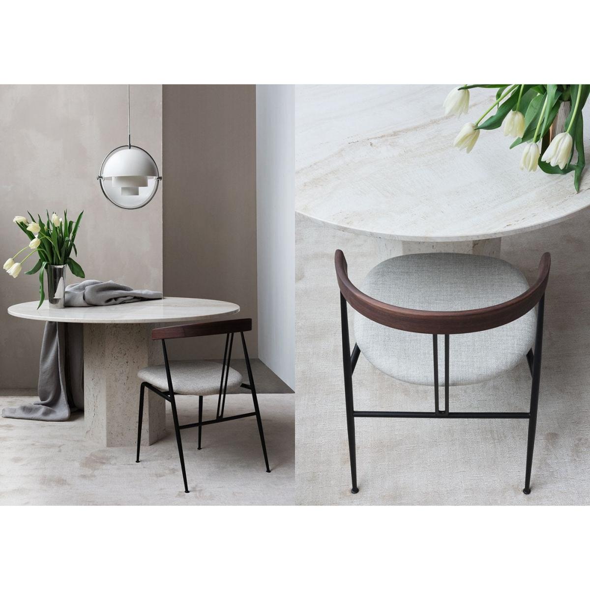 I love the Gubi Violin dining chair - its sleek design paired with the Tempt seat and walnut backrest makes it a versatile choice for a variety of interiors. It excels in modern and Scandinavian-inspired spaces, where its minimalist form can be a real statement piece. For styling, I recommend pairing it with a light, neutral-toned table to highlight the natural wood tones, and adding textured or coloured accessories like cushions or place mats to bring warmth and personality. This chair also works well in open-plan kitchens or dining rooms that blend practicality with aesthetic appeal, making it both a comfortable and stylish addition to everyday dining areas.