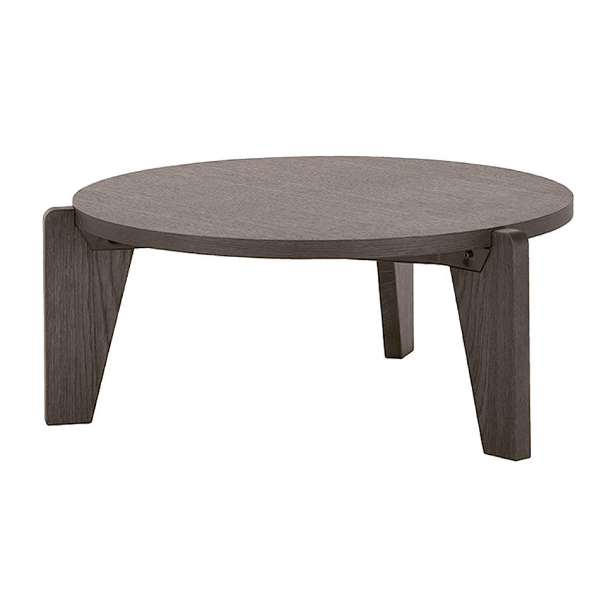 Expertly designed by Jean Prouvé for Vitra in 1944, the dark smoked oak Guéridon Bas Table is sure to lend a contemporary touch to any space. Harking back to an original tropical wood version of the table called the 'Table Africaine', the Guéridon Bas Table is crafted from solid dark smoked oak and held together with powder-coated black bent sheet metal. Having become increasingly focused on the nature and properties of wood, during the 1940s legendary French designer Jean Prouvé's material of choice was solid wood. A skilled engineer, Jean Prouvé's designs range from lighting and furniture to façade elements and prefabricated houses.