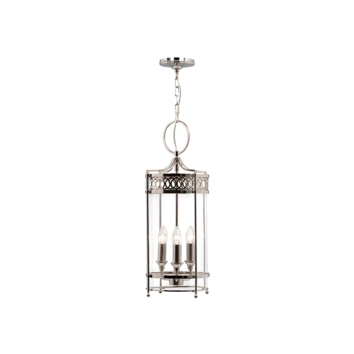 Guildhall 3 Light Ceiling Lantern Pendant Polished Nickel, E14 - Polished Nickel