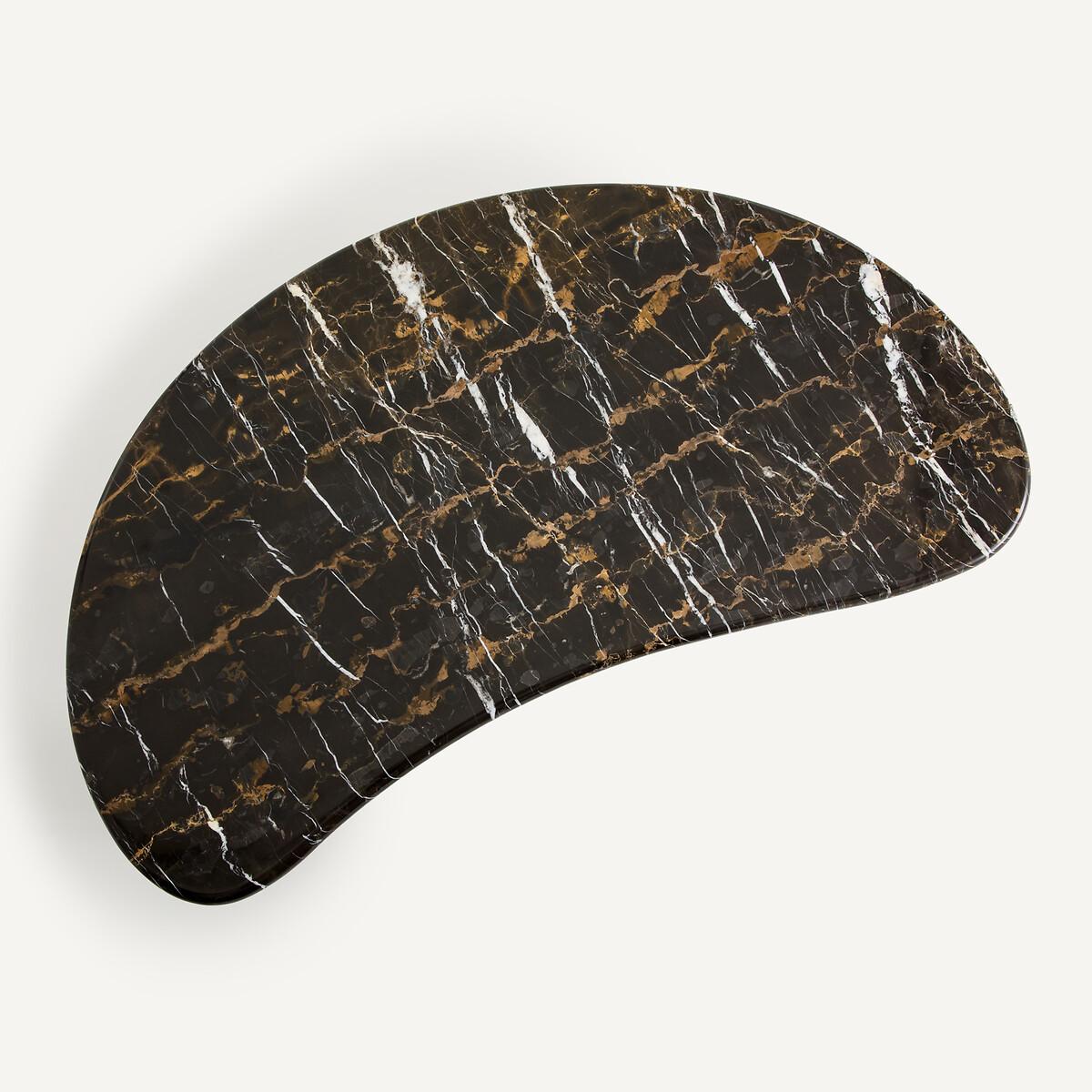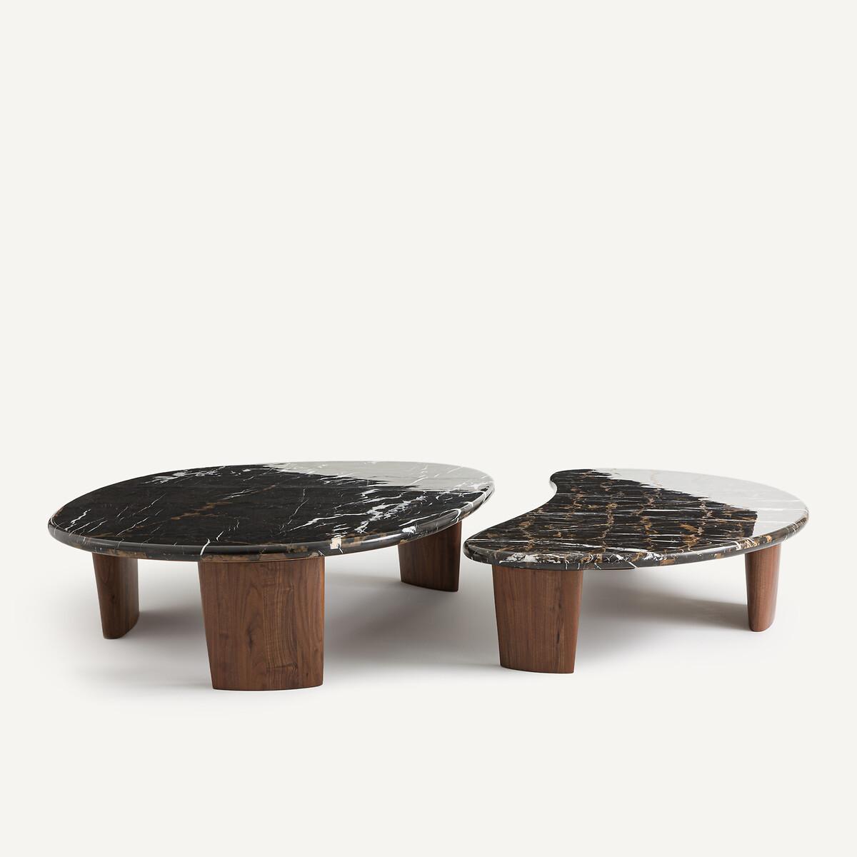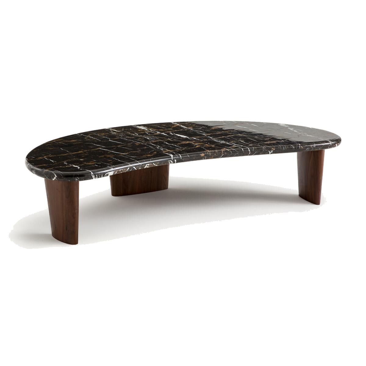 With its organic curves, : the Guimel coffee table takes the shape of a pebble. And it gives free rein to the material, amber marble, a noble stone with warm tones. Guimel is an exclusive piece of furniture designed for AMPM.Product Details • Top in amber marble, each piece is unique, with varying degrees of marbling and roughness • Underside of top in walnut veneered MDF, polyurethane finish • Sculptural legs in solid walnut, polyurethane finish. Care Advice. Marble is a naturally porous material that is susceptible to stains. To keep it in good condition, follow the maintenance advice below: • Avoid placing hot objects on the surface, use coasters and trivets. • Immediately wipe up any spilled liquid with a white cloth dipped in lukewarm water and wrung out. • Regularly maintain your furniture with products from our partner Akemi®. • We advise you to use Akemi® Crystal Clean Spray for your daily maintenance and, at least once a month, Akemi® Triple Effect Spray to clean and protect your marble surface.. This will reinforce the initial treatment and its water-repellent effect will prevent dirt from penetrating the material easily. • If you want to use products other than those of our partner Akemi®, choose only p. H-neutral cleaners. • Acid, anti-limescale or bleach-based products are not recommended. Dimensions • Width: 129.8cm • Height: 29cm • Depth: 82.4 cm • Assembly required. • WOOD FROM SUSTAINABLY MANAGED FORESTS. FSC® certified wood comes from forests that are environmentally, socially and economically well managed. Dimensions and weight of parcel2 parcels • W143 x H14.5 x D89.5cm, 55.4kg • W44 x H32 x D40.5cm, 10.9kg