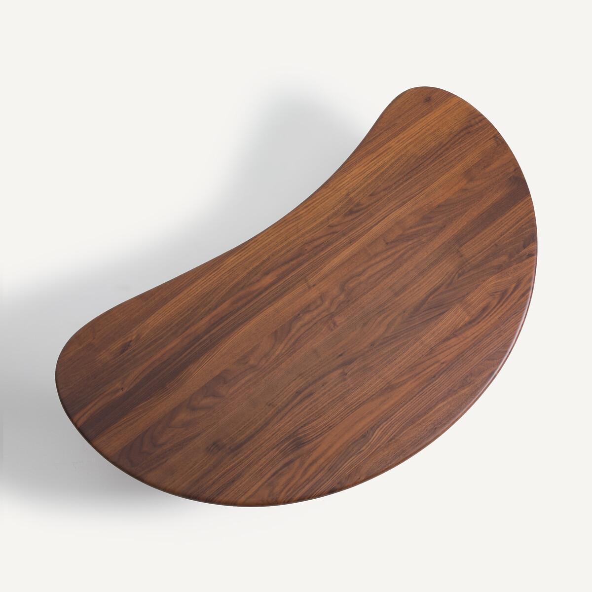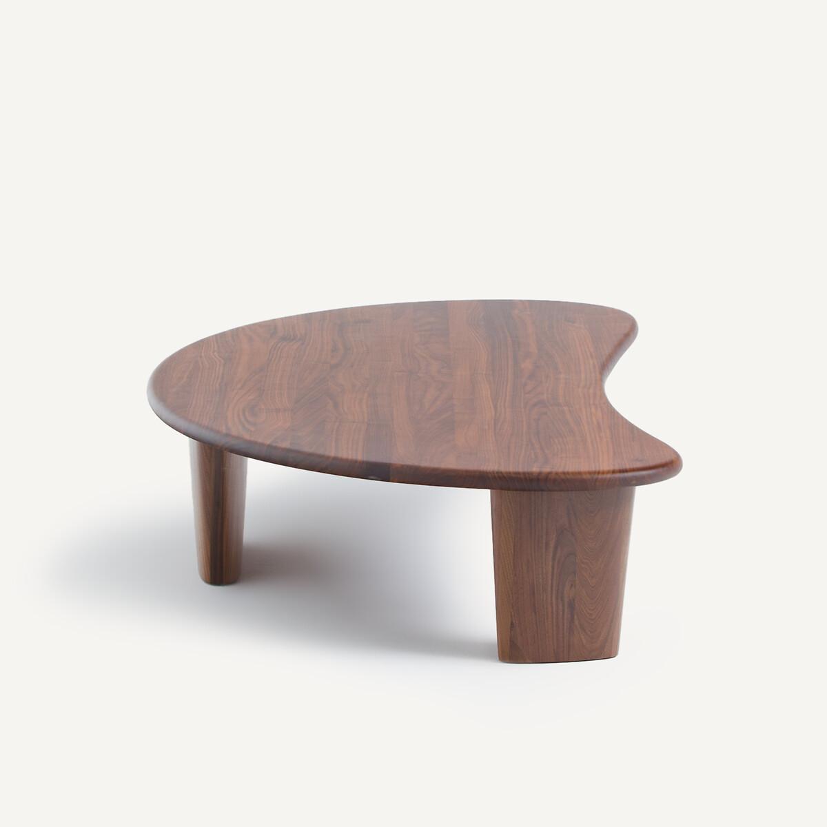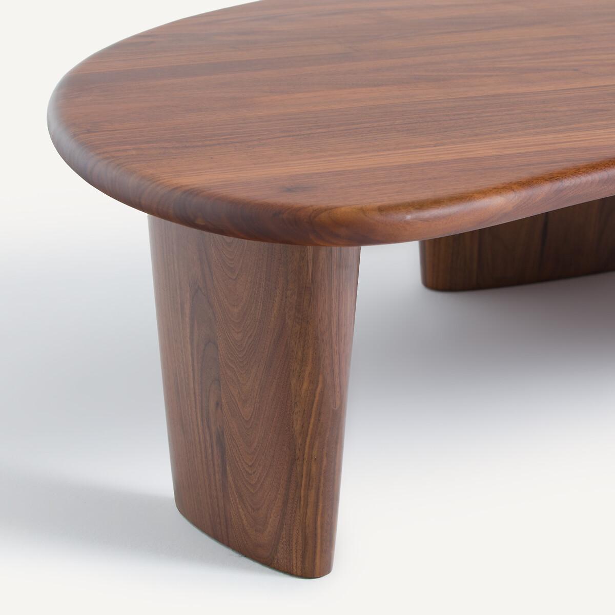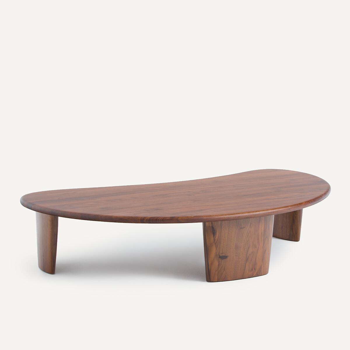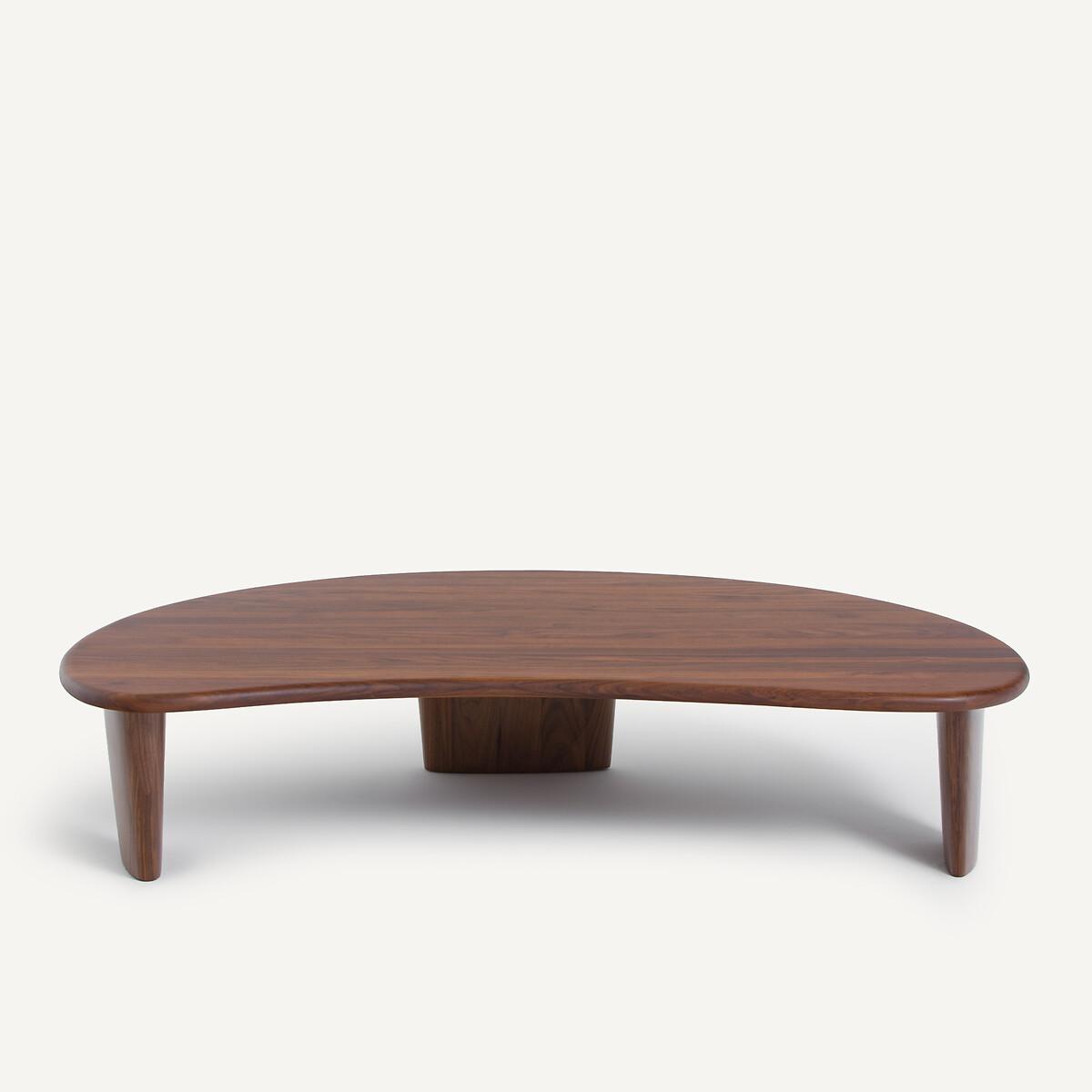 With its organic curves, : the Guimel coffee table takes the shape of a crescent moon. Made entirely of walnut, it gives free rein to the material, solid wood.. Guimel is an exclusive piece of furniture designed for AMPM.Product Details • Solid walnut top, 2.6 cm thick • Sculptural base in solid walnut • Polyurethane finish • FSC® certified wood. Dimensions • Width: 130cm • Height: 27.5cm • Depth: 82.5cm • Sold pre-assembled. Dimensions and weight of parcel2 parcels • W40 x H9 x D93 cm, 19 kg • W46 x H36 x D38 cm, 14 kg