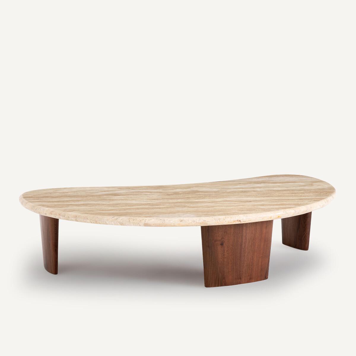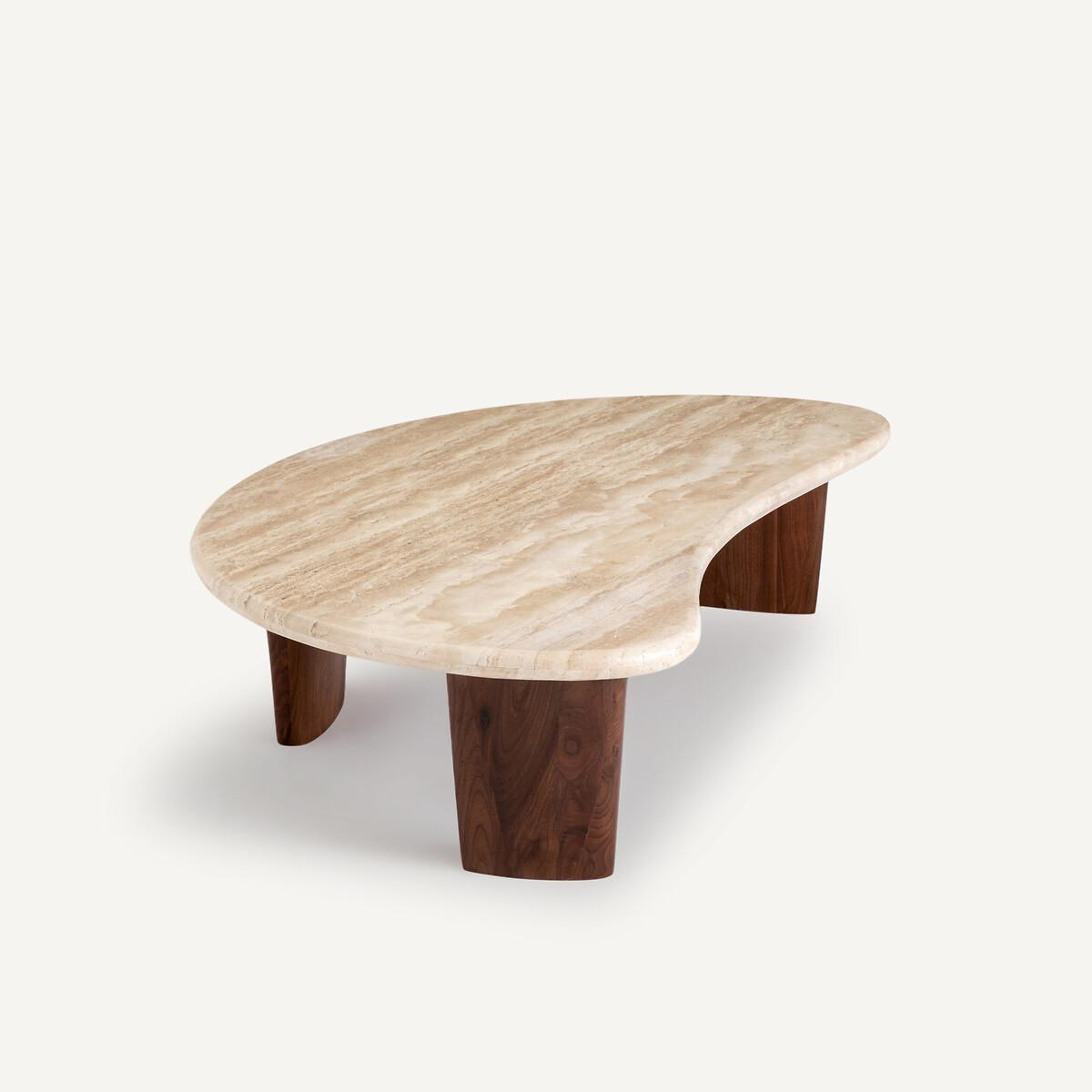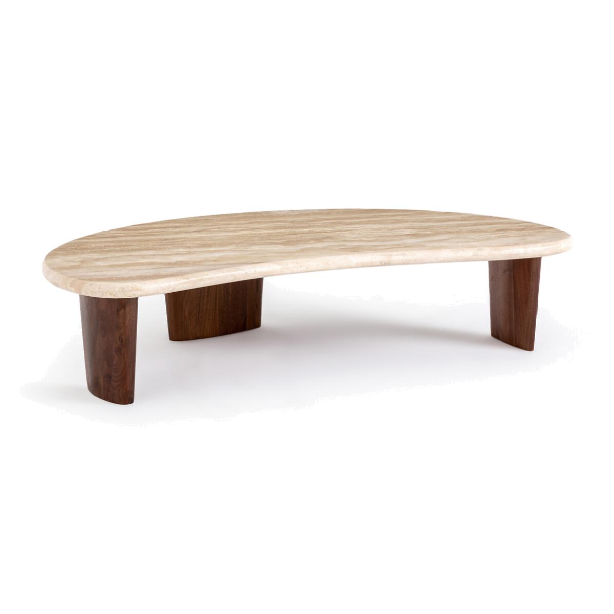 With its organic curves, the Guimel coffee table takes the shape of a crescent moon. Its design gives free rein to the material, travertine - a stone with soft tones, extracted in Turkey.