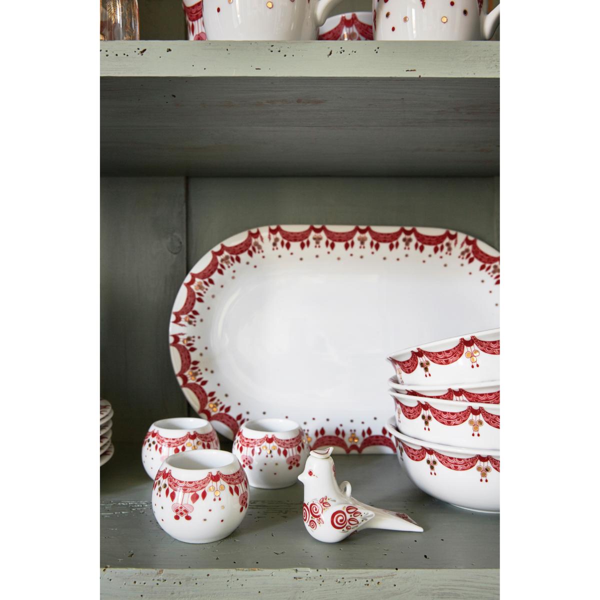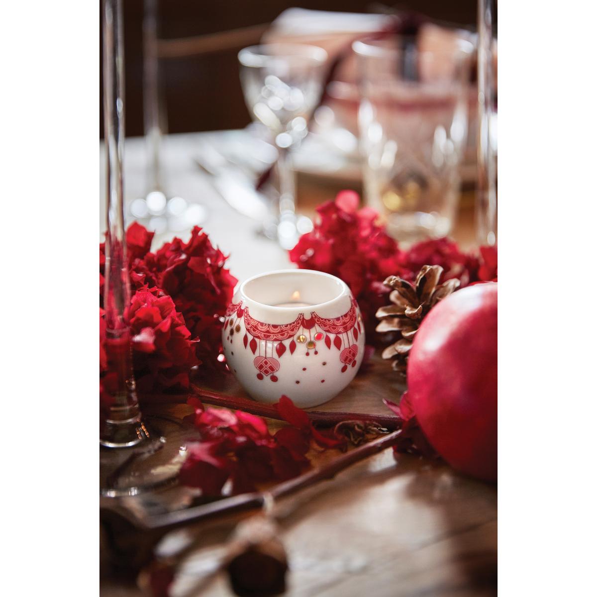 Guirlande candlestick 5 cm from Bjørn Wiinblad is a fine candlestick for use with a tealight and is made of porcelain with an elegant pattern of a garland with many beautiful details. This candlestick is a lovely decorative feature on both the dining table or in a window. Use this candlestick with other products in the popular Guirlande series.