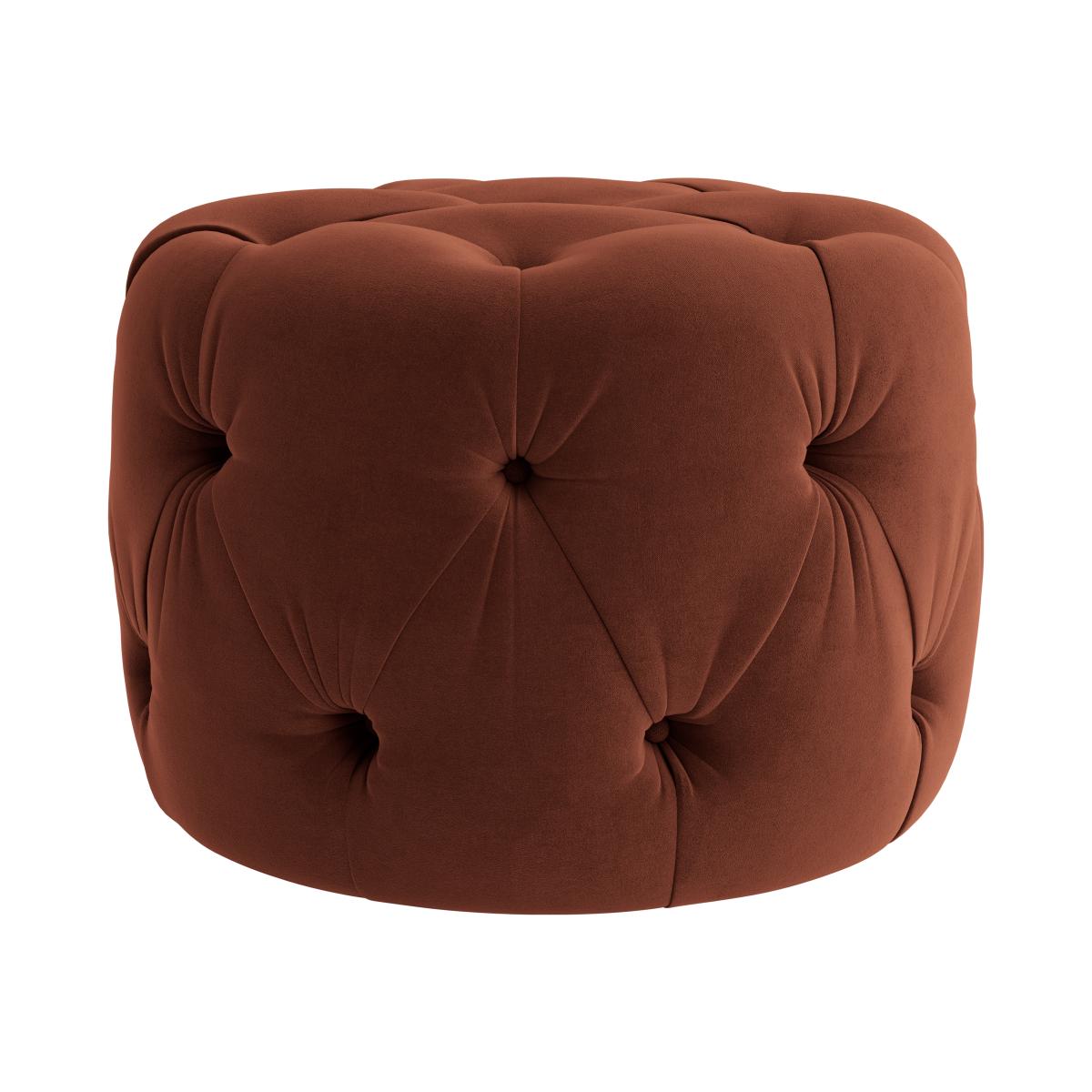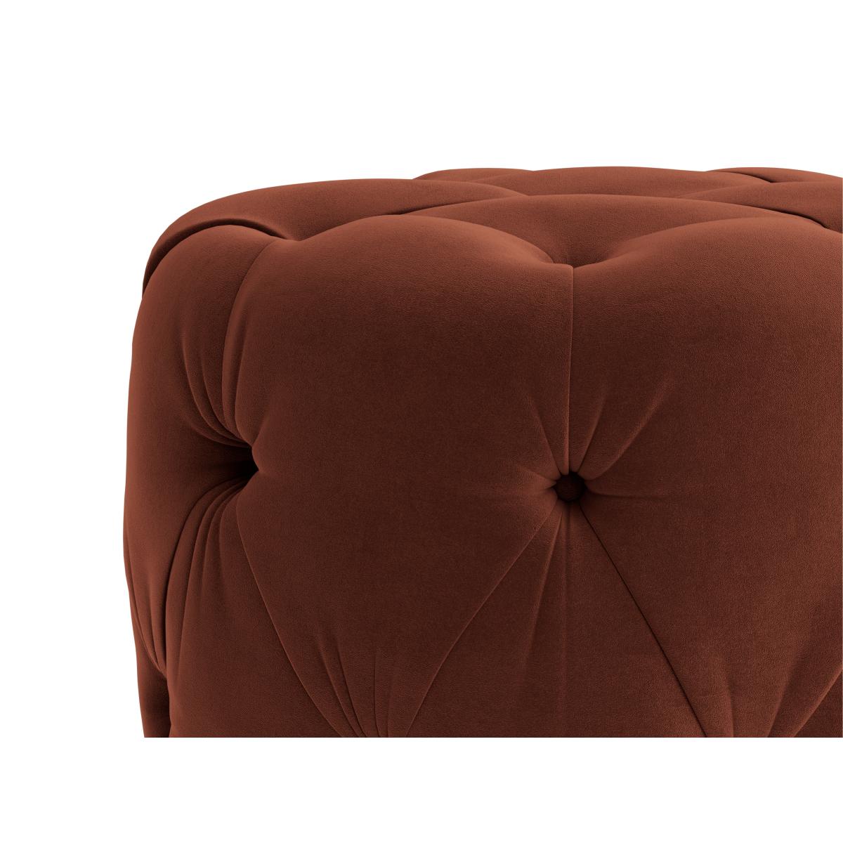 I love this little footstool because of its playful, plush design and versatile colour, making it a perfect addition to both modern and eclectic interiors. It works beautifully as a casual extra seat or footrest, especially in living rooms that balance comfort with style. Its rounded shape and tufted detailing add a cosy, inviting feel, while the warm tone can complement other earthy or muted palettes. For styling tips, consider placing it alongside a sectional sofa or mixed with other textiles to create a layered, relaxed look. It's also great for adding a pop of colour in more neutral spaces or for anchoring a reading nook. Practical and charming, it’s a great piece to incorporate without overwhelming a space.
