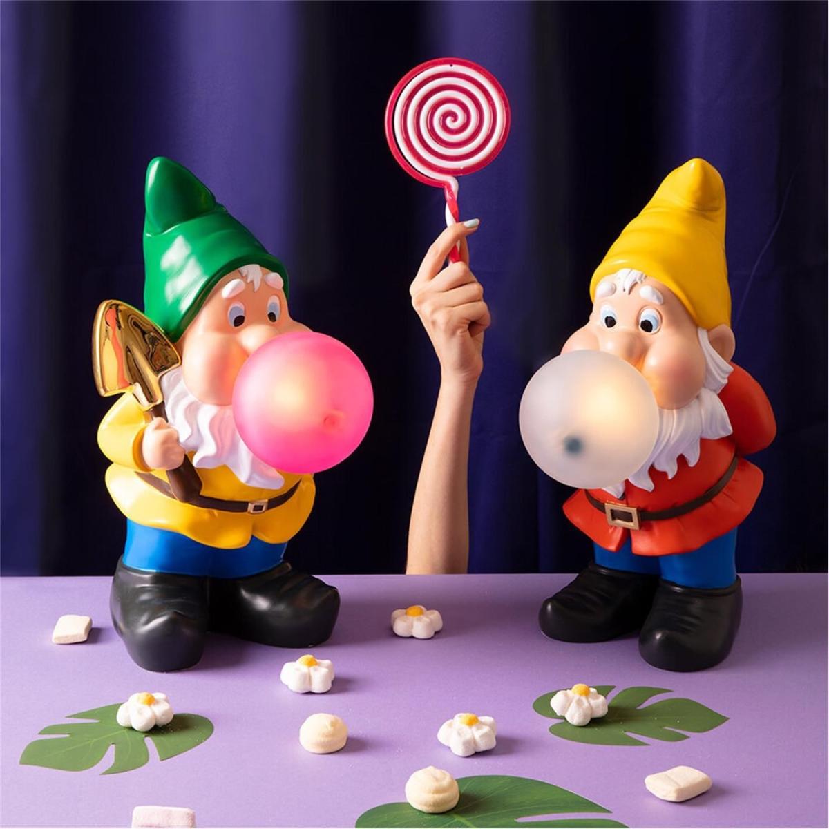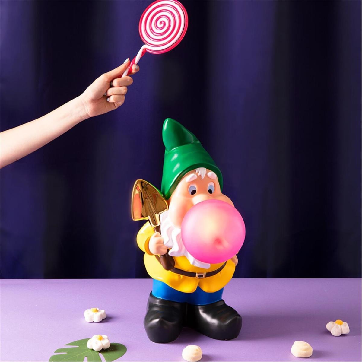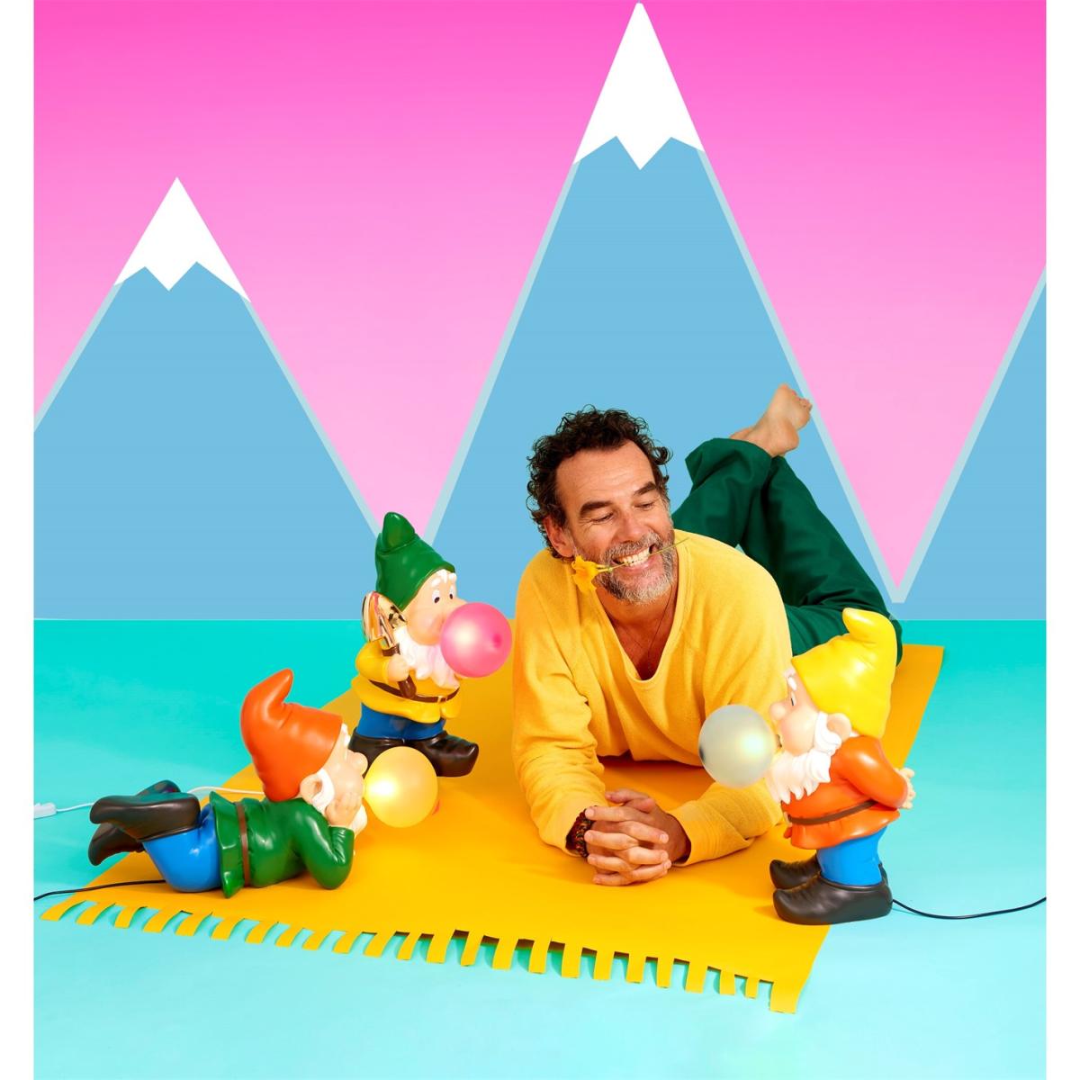 Introducing the Gummy Lamp - a whimsical addition to your home that is sure to put a smile on your face. This oversized gnome, designed by Uto Balmoral for Seletti, is blowing giant bubblegum bubbles and comes in a range of bright and cheerful colours. With its long beard and black clogs, this lamp is the perfect way to add a touch of playful charm to any room.