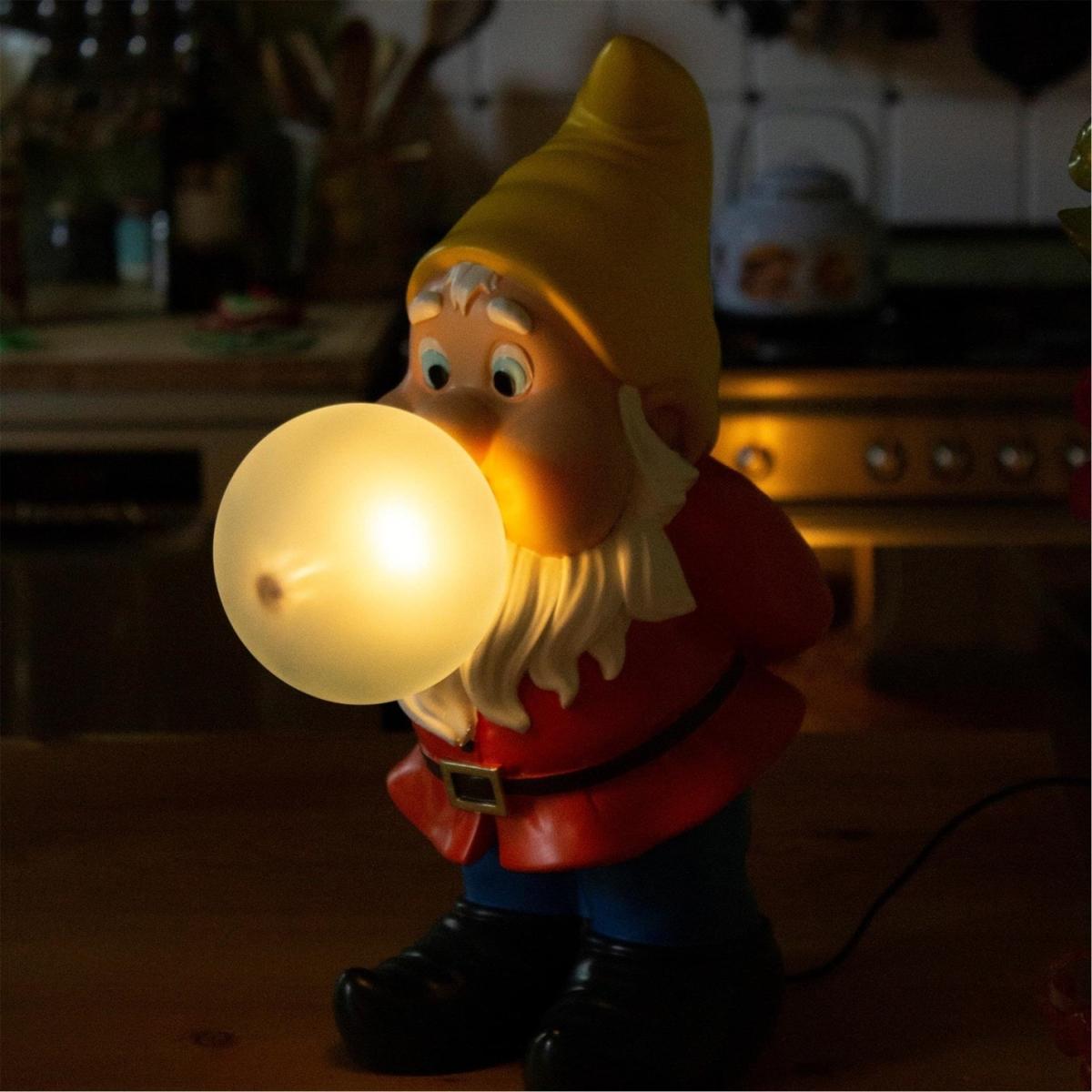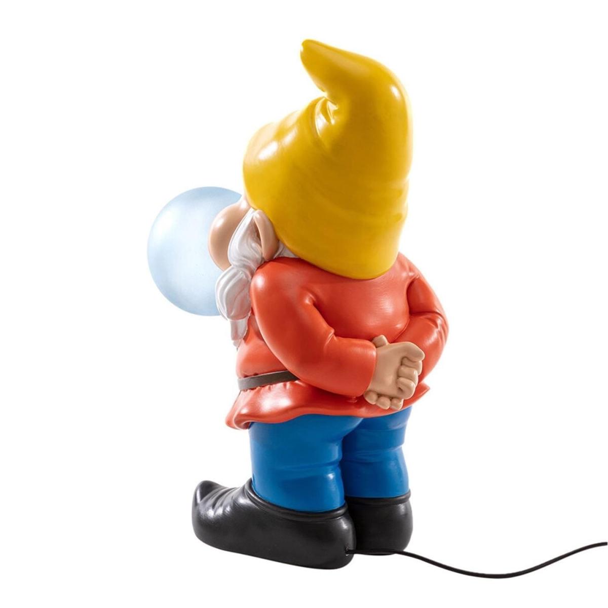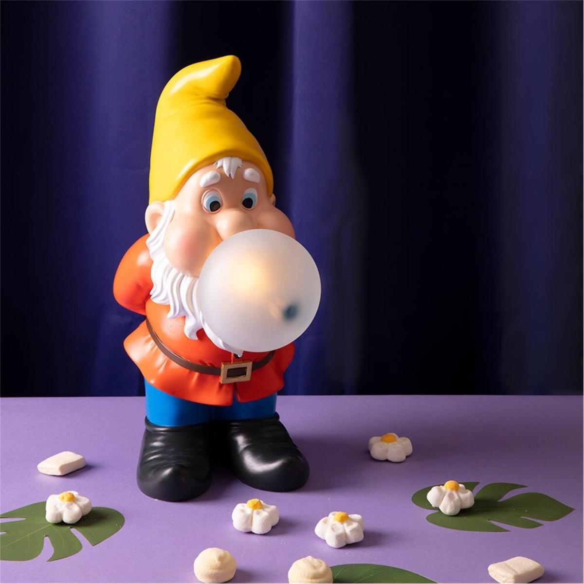 Introducing the Gummy Lamp - a whimsical addition to your home that is sure to put a smile on your face. This oversized gnome, designed by Uto Balmoral for Seletti, is blowing giant bubblegum bubbles and comes in a range of bright and cheerful colours. With its long beard and black clogs, this lamp is the perfect way to add a touch of playful charm to any room.