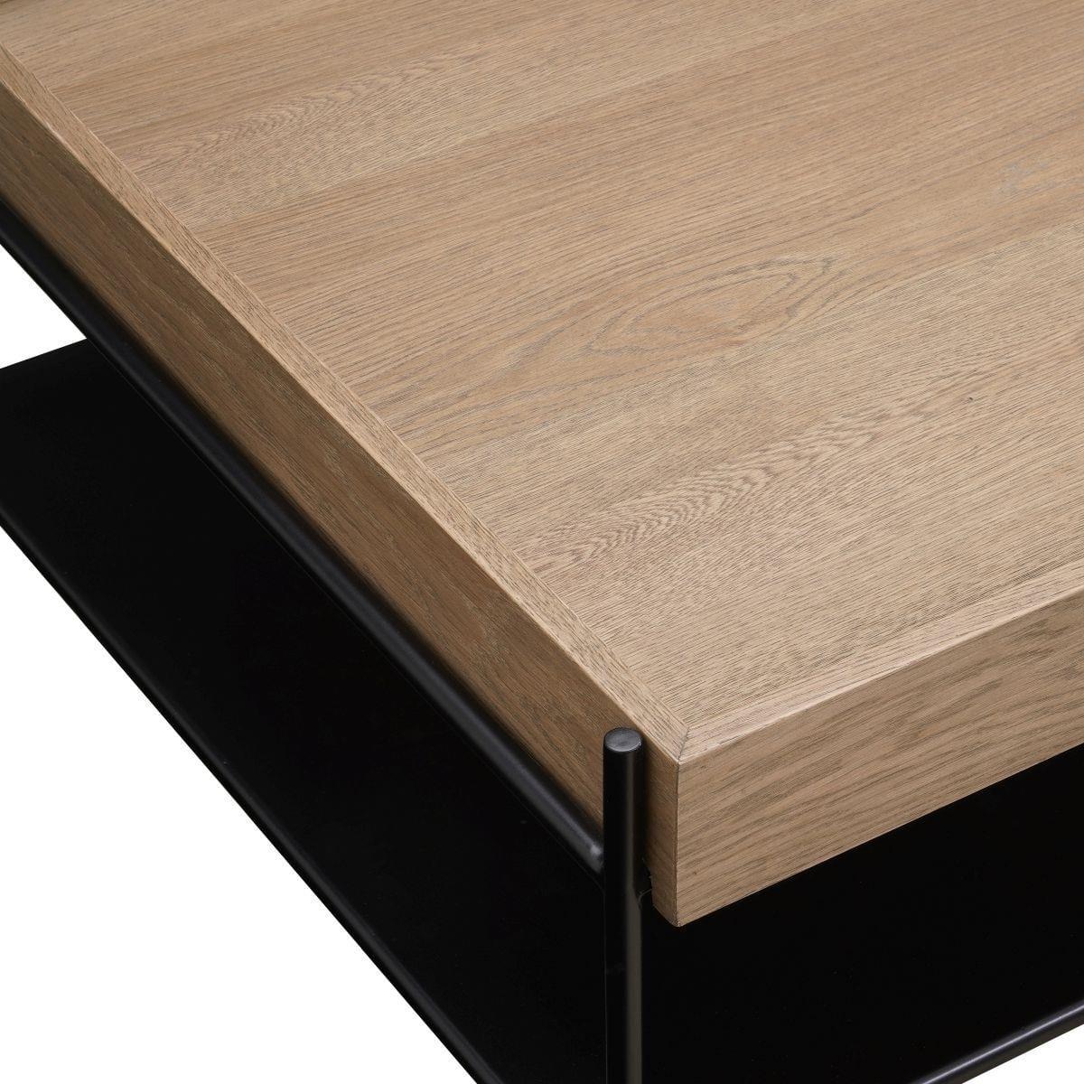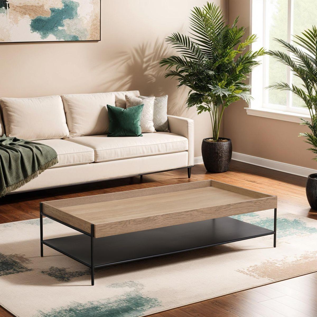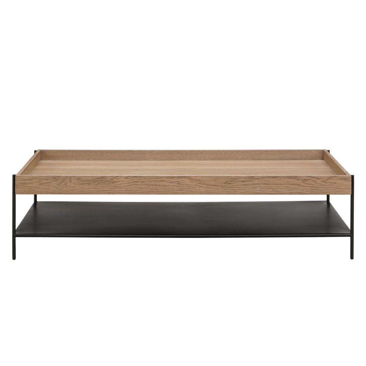 This large coffee table combines style and functionality, making it a standout in modern coffee tables. With a spacious 160cm x 80cm tabletop and premium oak veneer, its a perfect wooden coffee table for living rooms or offices. Its durable design includes extra storage for added convenience. Crafted for versatility, this modern coffee table from the Gus Collection boasts a sleek metal frame and an open metal shelf. The deep lip edge ensures items stay secure, while its minimalist yet sturdy design adds sophistication. Its a unique coffee table that blends seamlessly into contemporary or classic interiors. The tabletop features a luxurious oak veneer finish, offering both beauty and resilience. Perfectly proportioned, this wooden coffee table exudes elegance and warmth, making it ideal for those seeking a high-quality piece that marries natural materials with modern aesthetics. Measuring 160cm wide, 80cm deep, and 40cm high, this large coffee table offers ample surface area for any occasion. Designed for large spaces, its ready to use right out of the box, arriving preassembled for your convenience. This coffee table with storage elevates any room. W160cm D80cm H40cm Preassembled Large Modern Coffee Table