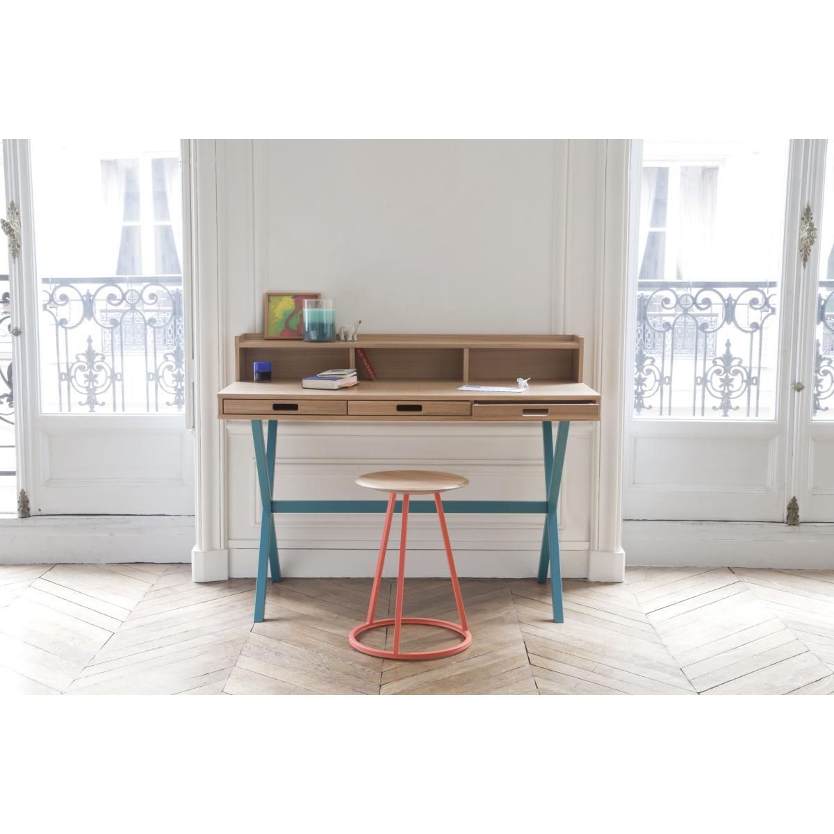 Charles Seuleusian combined solid oak and metal to create a stool named Gustave. Gustave has a light and gemoetric silouhette, easy to associate with many types of desks and tables. Its seat, wide and slightly curved, makes Gustave a very comfortable stool.