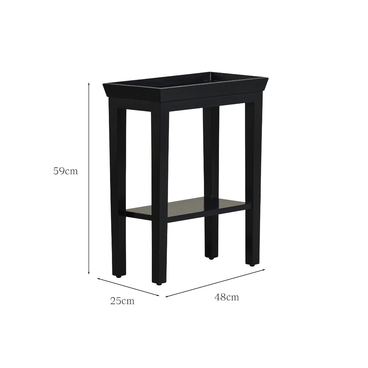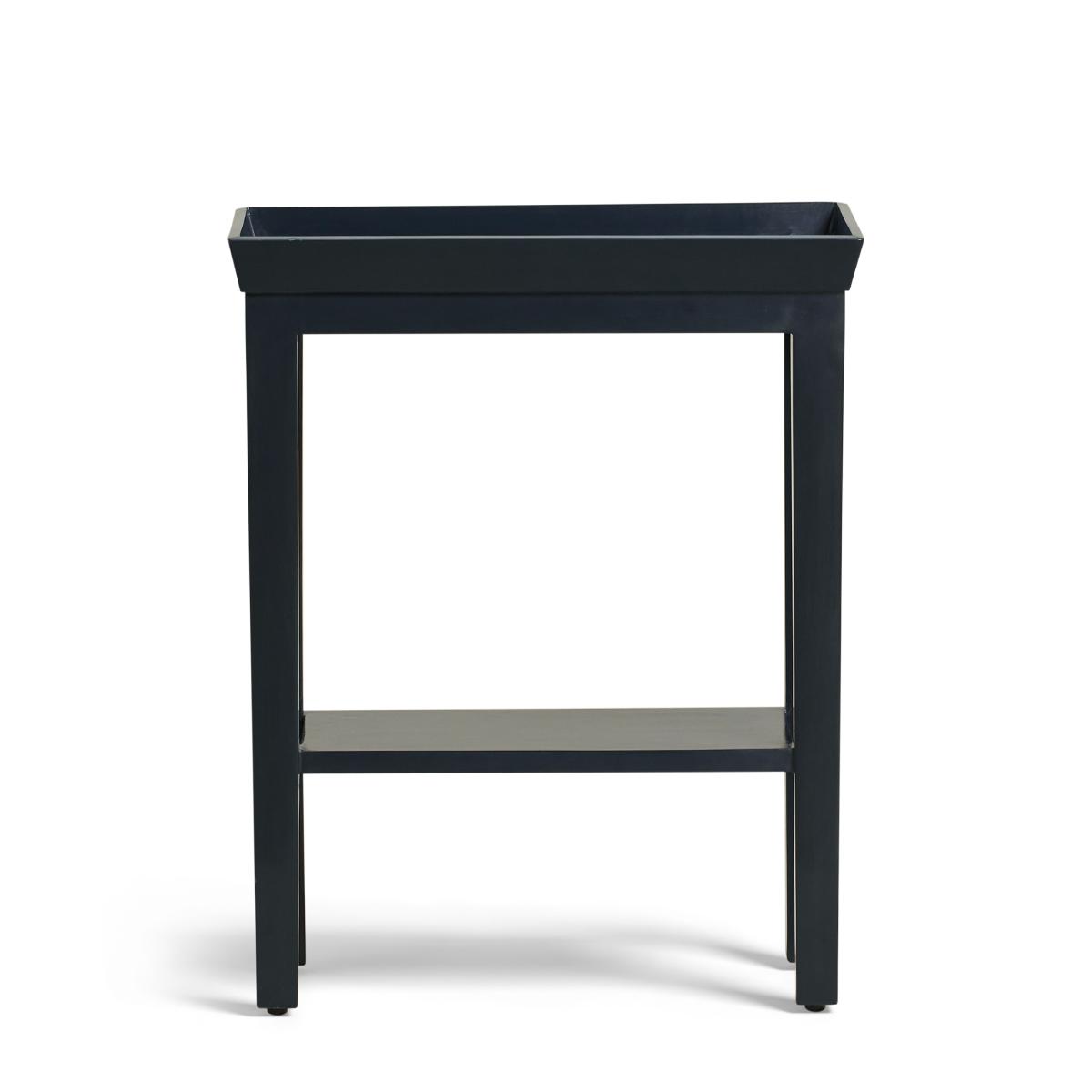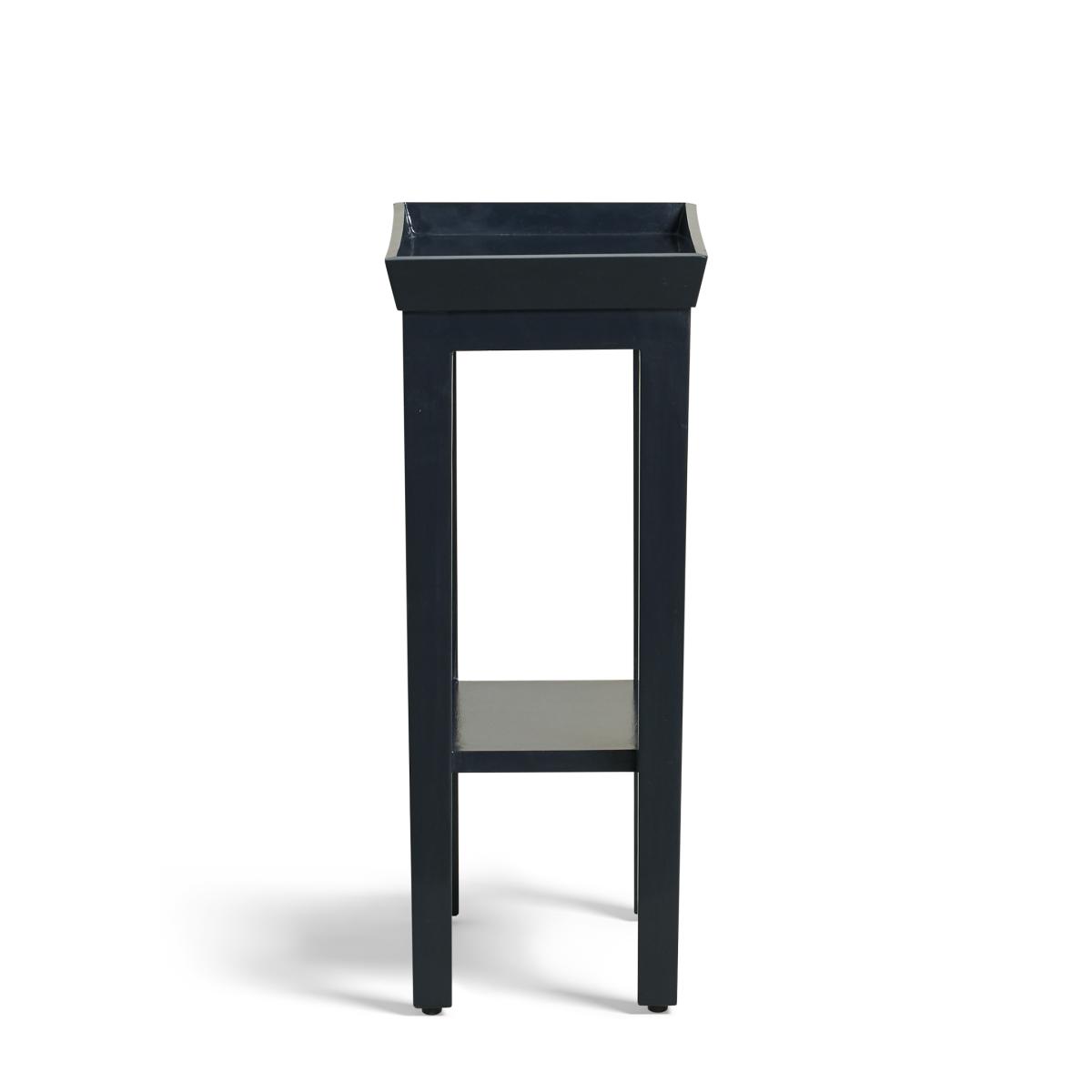 The Gustavian Sofa Side Table's narrow proportions make it an invaluable addition to a compact sitting room, offering two useful surfaces with a very small footprint. It can be used next to a sofa or armchair, or even beside a bed where space is limited, and the lipped top ensures nothing can be knocked off during the night. Inspired by our Gonglin collection, the table is finished in a dark, petrol-blue colour that lends it a little extra grandeur.