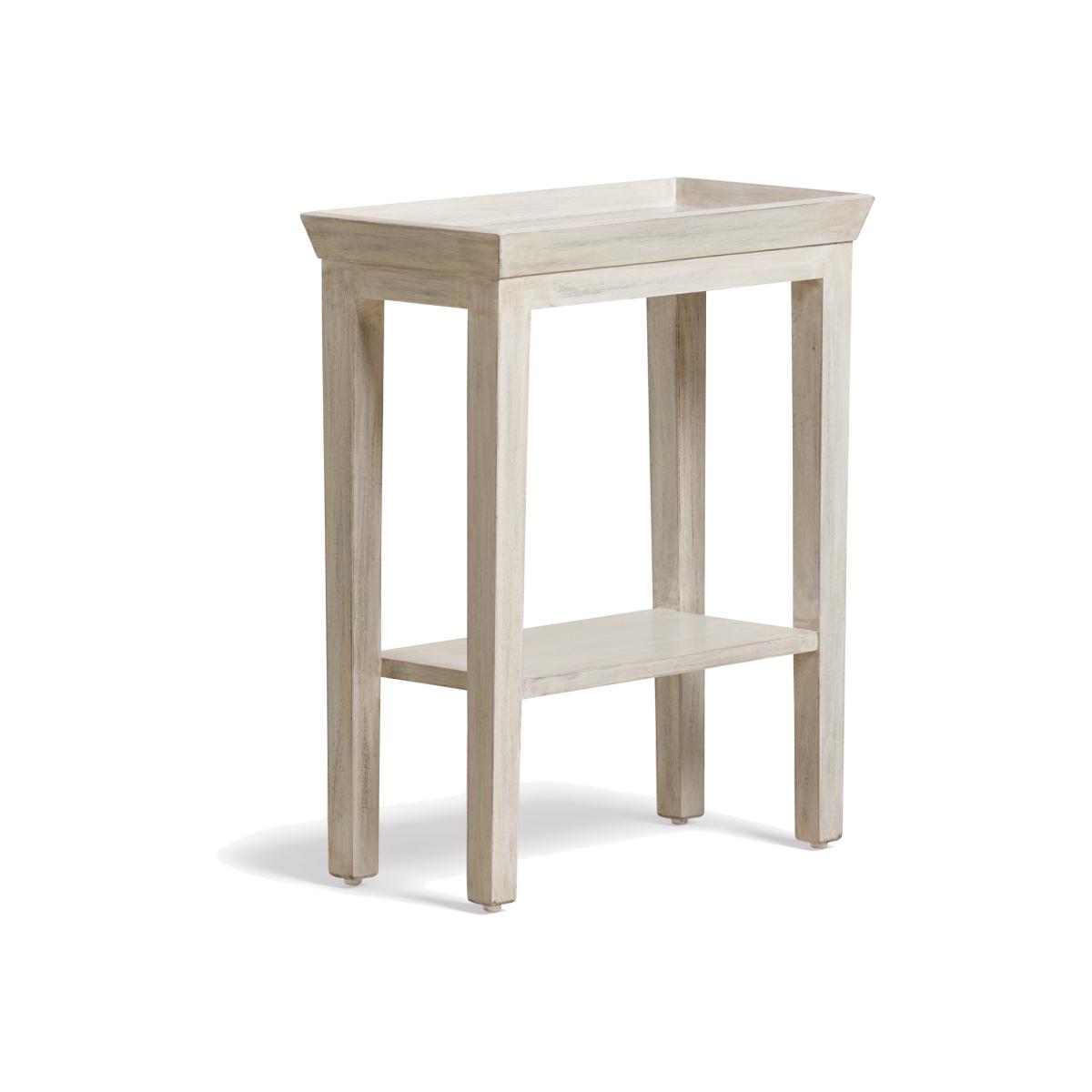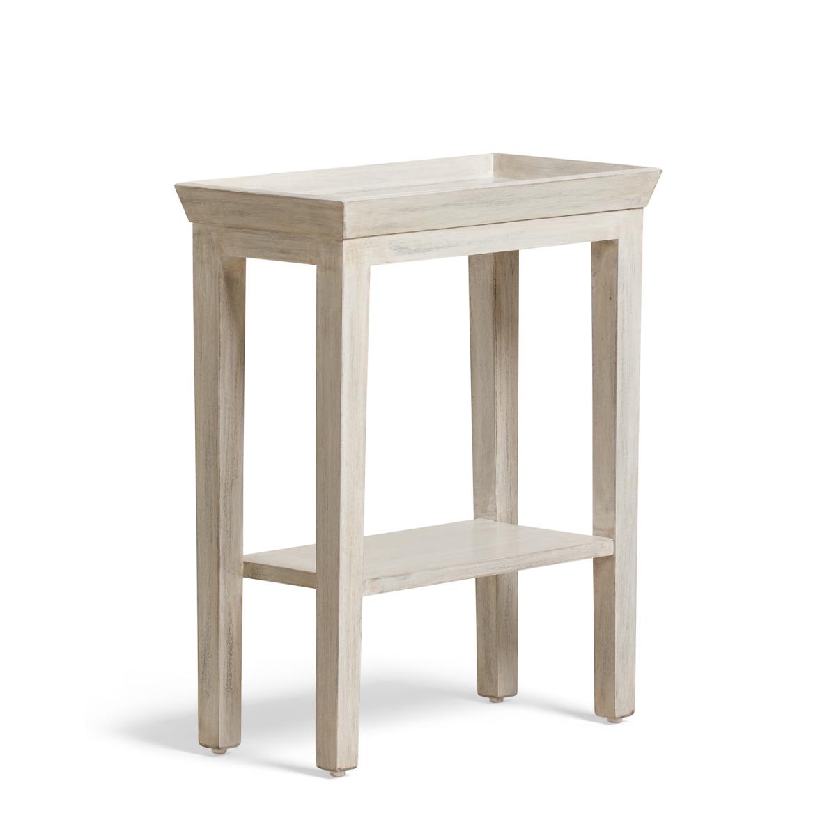 The Gustavian Sofa Side Table's narrow proportions make it an invaluable addition to a compact sitting room, offering two useful surfaces with a very small footprint. It can be used next to a sofa or armchair, or even beside a bed where space is limited, and the lipped top ensures nothing can be knocked off during the night. Finished in a gentle, washed grey colourway, the classic design fits into many schemes.