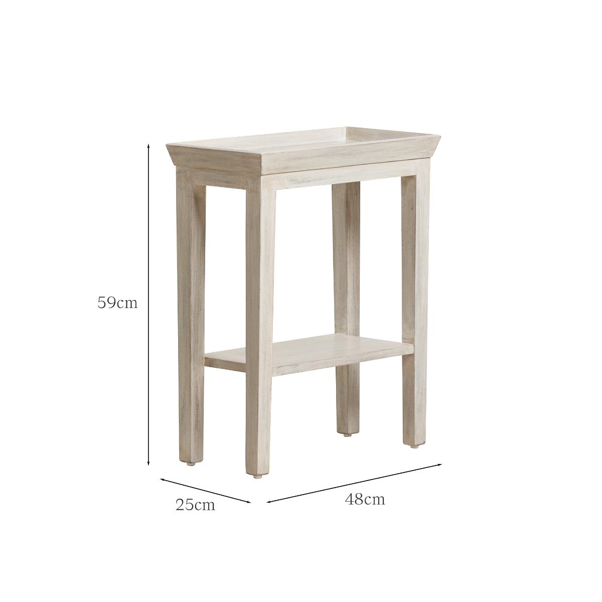 I love this little side table for its versatility and subtle charm. The washed grey finish ensures it’s easy to incorporate into both traditional and contemporary interiors, while its clean lines and natural wood tone add a touch of understated elegance. It’s ideal for Scandinavian-inspired schemes, coastal homes, or rustic settings, but can also soften modern spaces when styled with textured accessories. Practical styling tips include layering with a small lamp, a stack of books, or a plant to bring in some personality without cluttering the surface. Its open shelf also makes it functional for keeping everyday essentials close at hand.