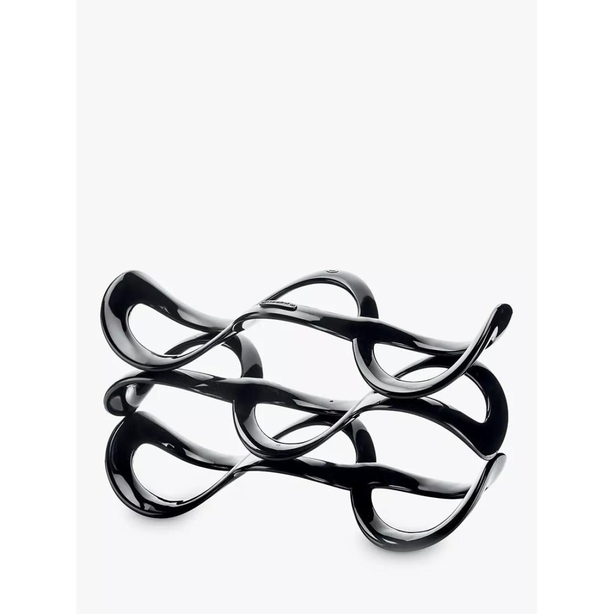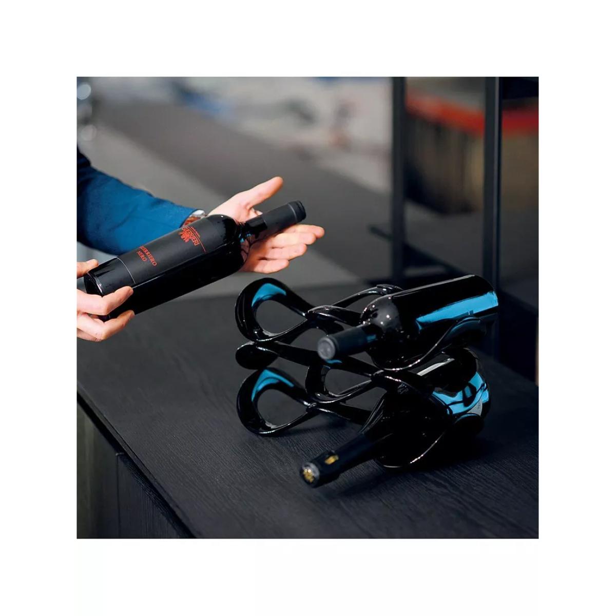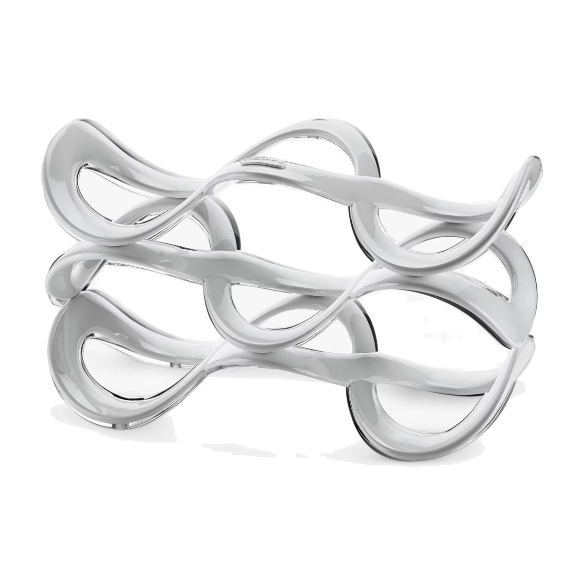 A wine rack and an attractive ornament, made in Italy by Guzzini. This universal bottle rack has an original form: a strip of acrylic material, sinuously interwoven to create a wine holder for up to five bottles of various sizes.