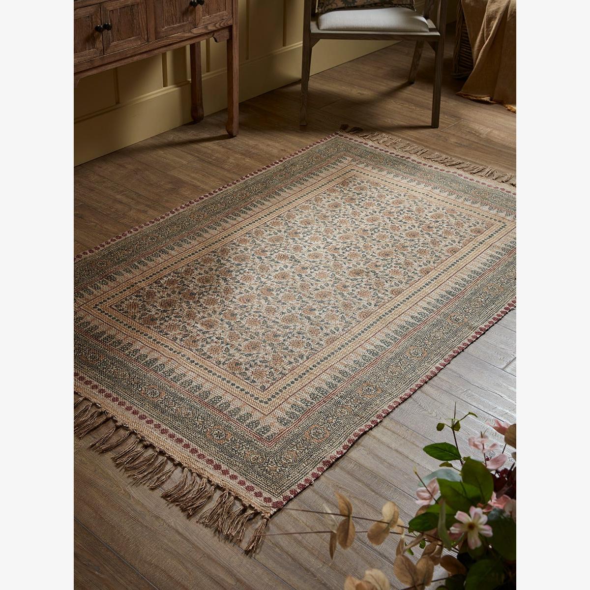 I love this rug for its subtle and timeless design, which makes it adaptable across a variety of interior styles-from classic to more contemporary schemes. The soft, muted colours help it work well in both neutral and layered palettes, adding warmth without overpowering the space. When styling, consider pairing it with natural textures like wooden furniture or cosy textiles to create a welcoming look. It's also practical as a base for layering-adding throws and cushions on nearby seating can really enhance the overall aesthetic. Its size fits well in living rooms or bedrooms, providing a versatile foundation that grounds the space while keeping it light and inviting.