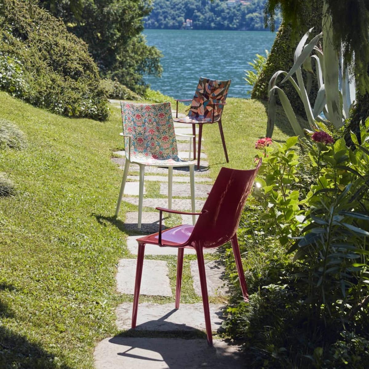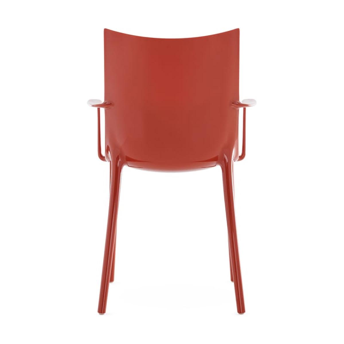 H.H.H.(Her Highest Highness) , ''Sa Majesté la chaise'', embodies the object that permeates our daily lives, implicitly telling our story. Philippe Starck takes us to new heights with the H.H.H. Chair. With its slender, incredibly fluid lines, the H.H.H. Chair has unrivalled elegance and graphic power. It stands out as a style icon that enchants and inspires. Philippe Starck: ''Usually, it's the human being who makes the chair, but with H.H.H. - Her Highest Highness, it's the chair that makes the woman or the man. The majestic elegance of H.H.H. compels us to strike a pose. And what would we be without the pose?" The H.H.H. Chair defines the very essence of the human being who interacts with it, forcing him or her to take a stand. Indeed, what would we be without the action of sitting, of "posing" in front of such a symbol of royalty and refinement? An object that goes beyond the simple concept of a seat, transforming every moment spent on it into a true moment of royalty. Respectful of the environment, this chair is made from 100% recycled thermoplastic technopolymer, sourced from pure storage materials uncontaminated by other materials. The choice was dictated by the possibility that technology now provides: to use a waste material that guarantees the aesthetic quality and structural criteria of the product by reducing the emissions necessary for its production. With this material, Kartell is blazing a new trail in environmental sustainability, using recycled materials while ridding the environment of waste that becomes raw material once again, thus activating a virtuous circle of circular economy. In detail: Variation : Rusty Brand : Kartell Designer : Philippe Starck Type : Chair Colour : Rusty (gloss finish) Material : Recycled thermoplastic technopolymer Dimensions : W 55 x D 57 cm x H 90 cm - Seat: H 47 cm - Armrests: H 66 cm Weight : 11 lb Characteristics : Made in Italy - Recycled material - Project date: 2024 - For indoor & outdoor use Show less