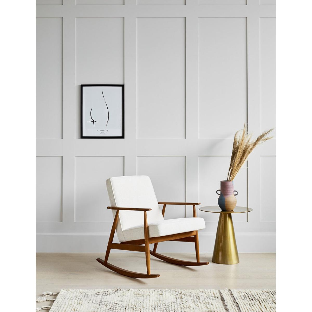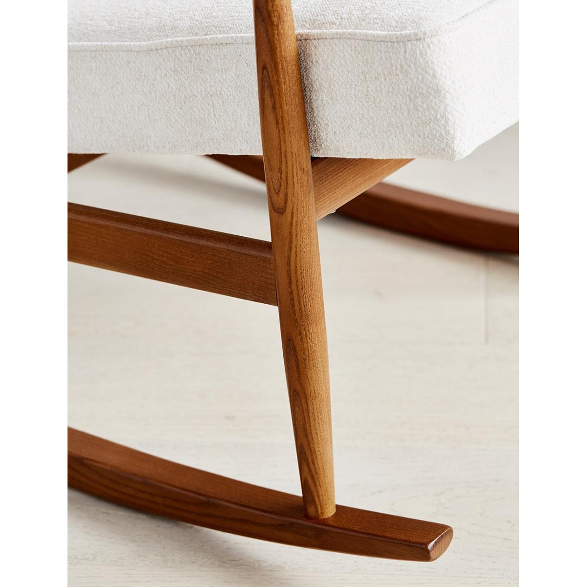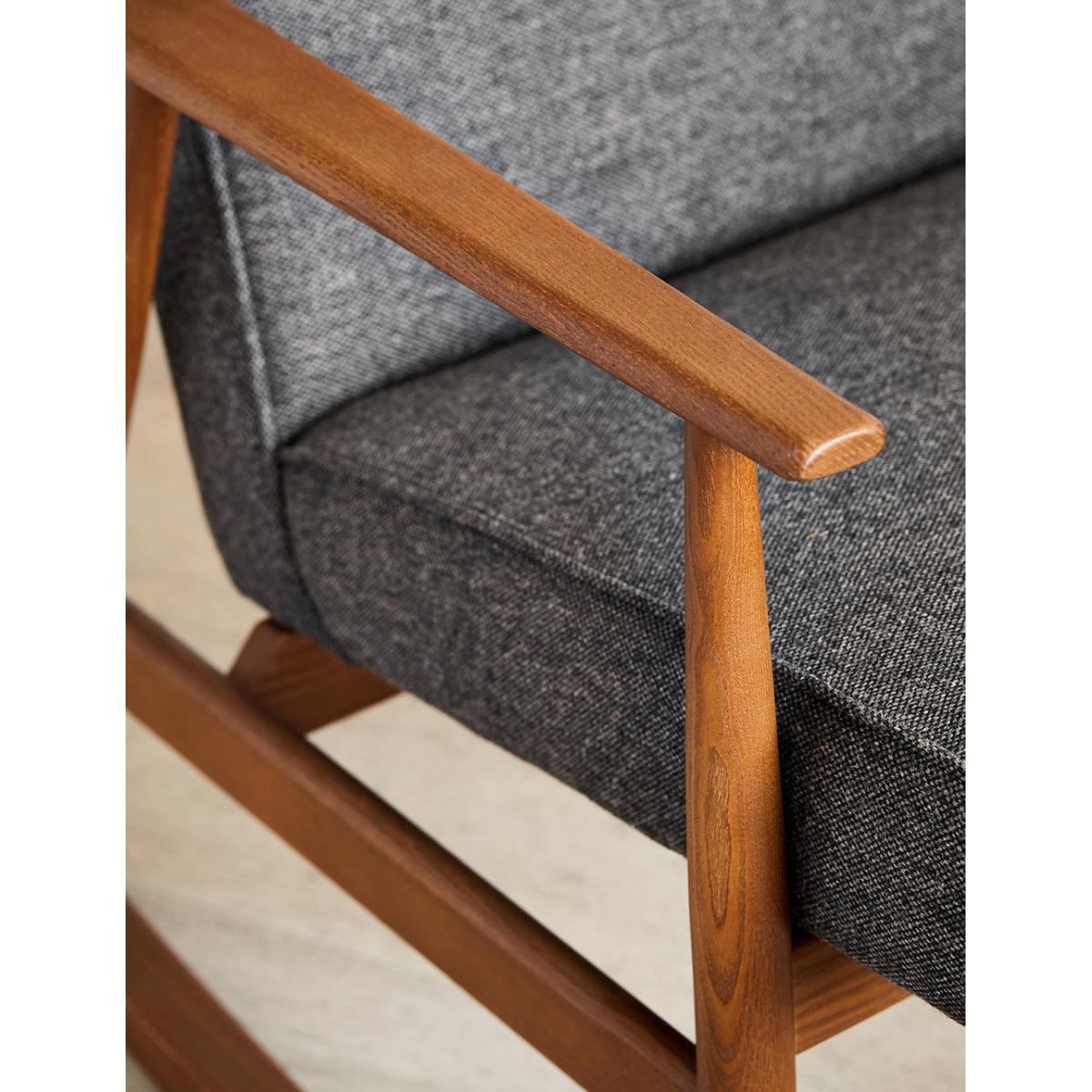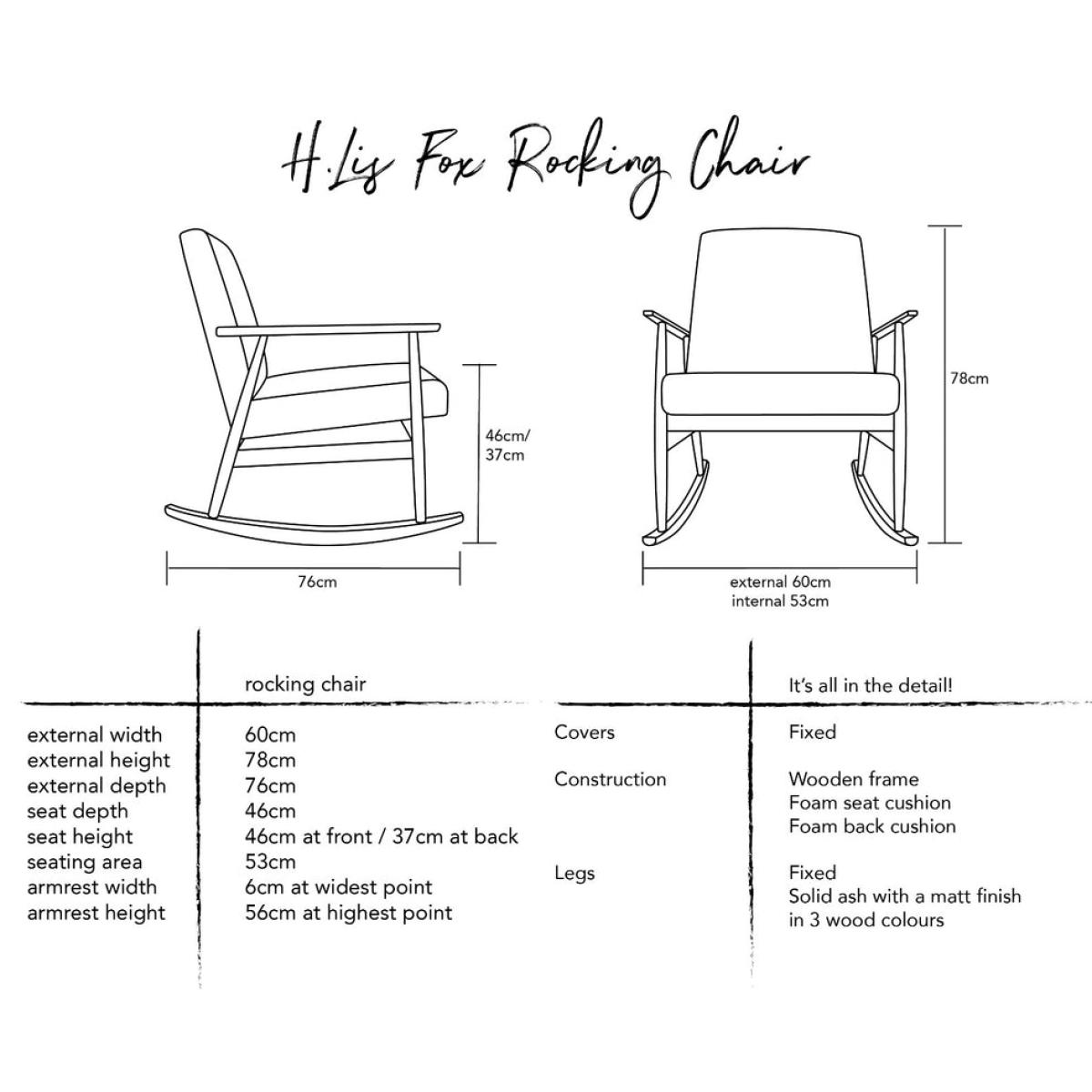 Introducing the Fox Rocking Chair, a contemporary addition to the 366 Concept's revival of Polish Mid-Century design icons. Based on the classic 300-190 Fox Easy Chair designed by H.Lis, this sleek and stylish rocking chair is crafted with a sleek ash frame and a comfortable cushioned seat that embodies the simplicity and elegance of Scandinavian vintage forms. Whether you're looking to complete a Mid-Century Modern aesthetic or add a statement piece to your interior, the Fox Rocking Chair is a versatile and timeless addition to any home. Pictured here in Wool Grey Black and Light Ash wood Based on the classic 300-190 Fox Easy Chair designed by H.Lis, this sleek and stylish rocking chair is crafted with a sleek ash frame and a comfortable cushioned seat.