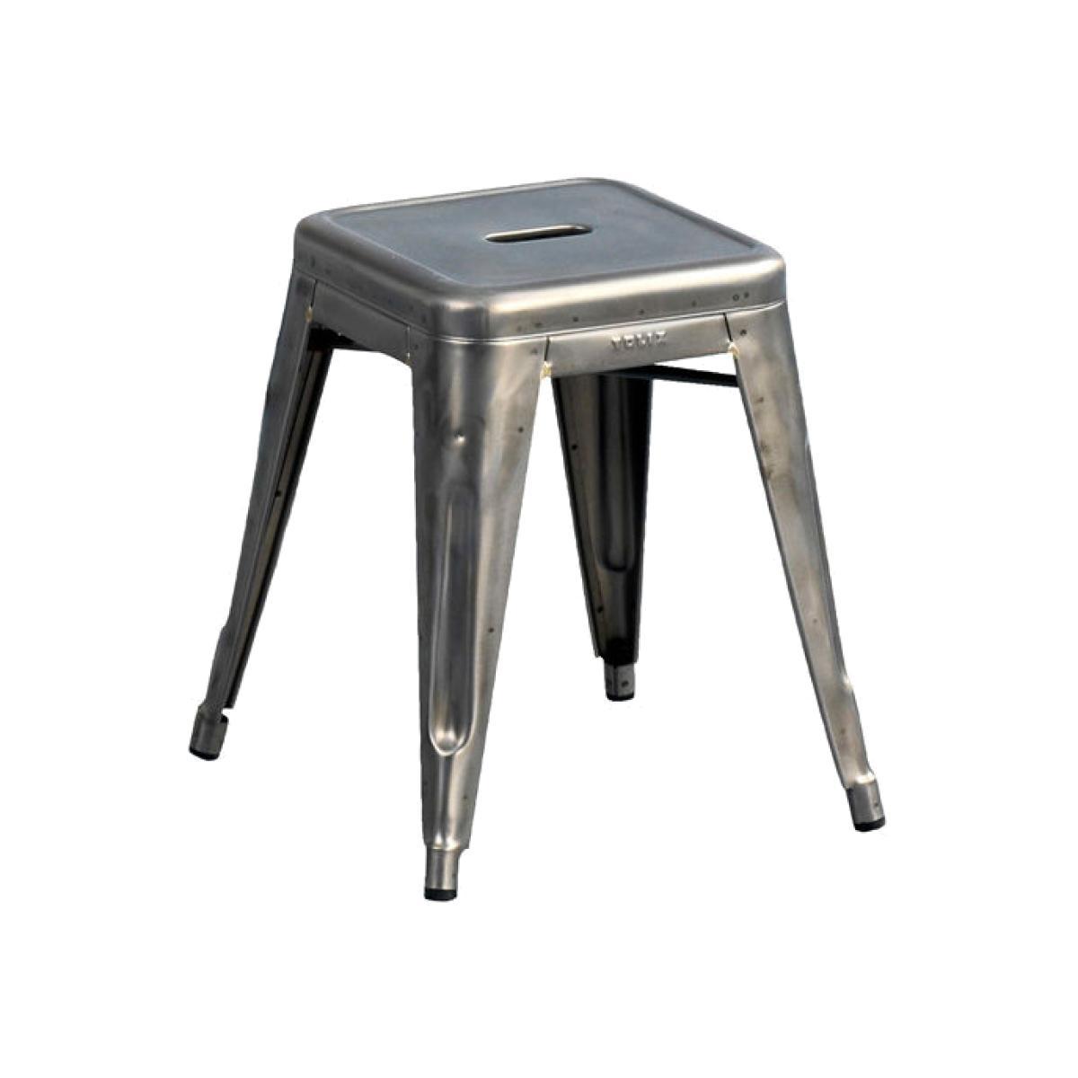 The H stool, an icon of industrial aesthetics for almost a century, has made it through all times and styles, and become a classic in our collective memory, a “living heritage”, which is an illustration of the French art of living! Having a modern style of the 1930’s – 1950’s, the H stool is solid and extremely light. It is also stackable and space-saving. Its uncluttered but also practical look is the key of such success. It was present in a number of terraces and café in the fifties before finally getting into domestic settings. The metal Tolix chair has significantly marked the history of design. All the credits go to Xavier Pauchard, its designer, who used metal sheets and zinc for the first time in order to produce furniture series, which makes the Tolix chair the first industrial French chair. Nowadays, the company employs high-performance-machines that go along with manual operations and historical tools. Each single chair is thus unique and has a Tolix signature. Tolix has certainly deserved the “Company of living heritage” that it received from the French Ministry for Economy, Finances and Industry in 2006. This H stool, made of raw steel sheets and high-gloss colourless varnish, has not been galvanized and cannot therefore be used outdoors. If looking for a chair for both indoor and outdoor use, please check the galvanized version of this chair. This version with transparent varnish has visible welding points, which gives the chair a touch of handicraft and highlights the raw aesthetics of this product.