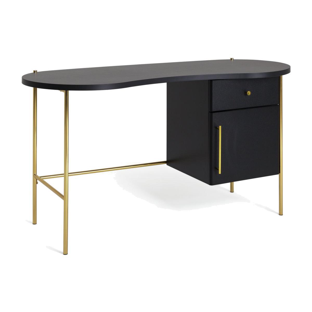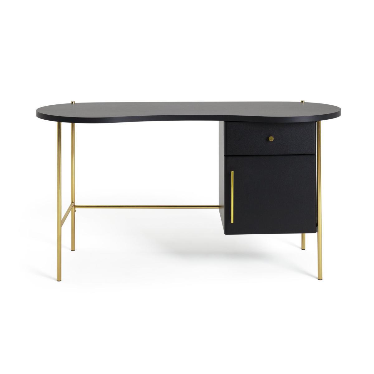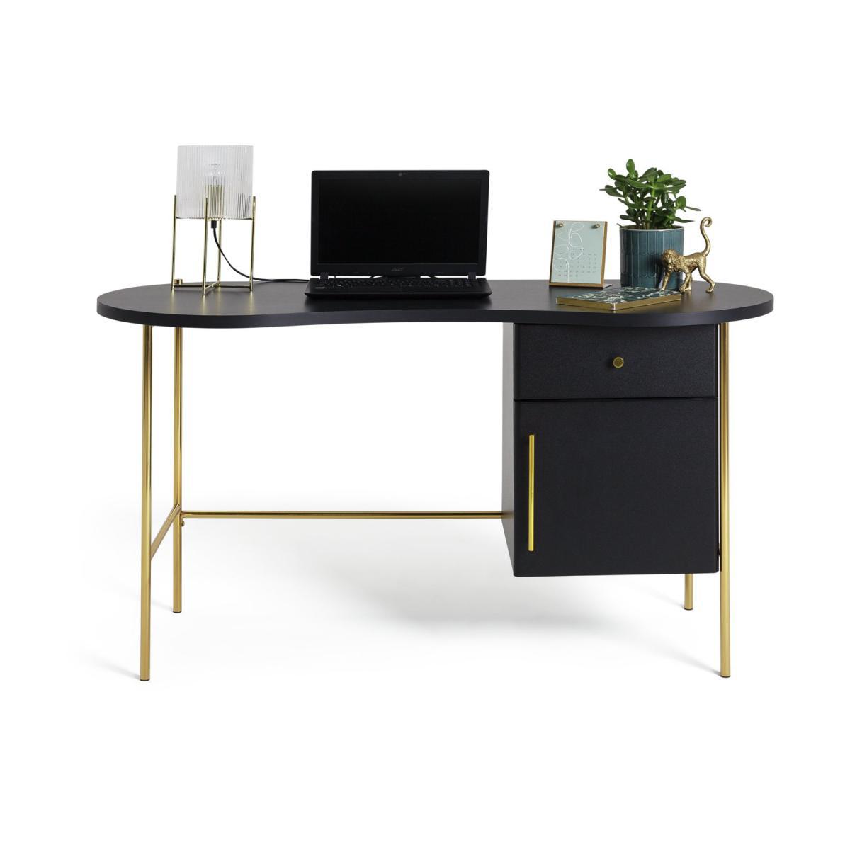 Full of beans. Our Habitat jelly bean desk will blow you away. For this desk design, we've definitely thought outside the box. Its quirky shape allows you to roll your office chair up close, so you can buckle down for the day. It's been built to be bold, with its glamorous combination of black and gold. Hide away stationery in the drawer and maybe a few files inside the storage cupboard. Show-stopping style? Tick.