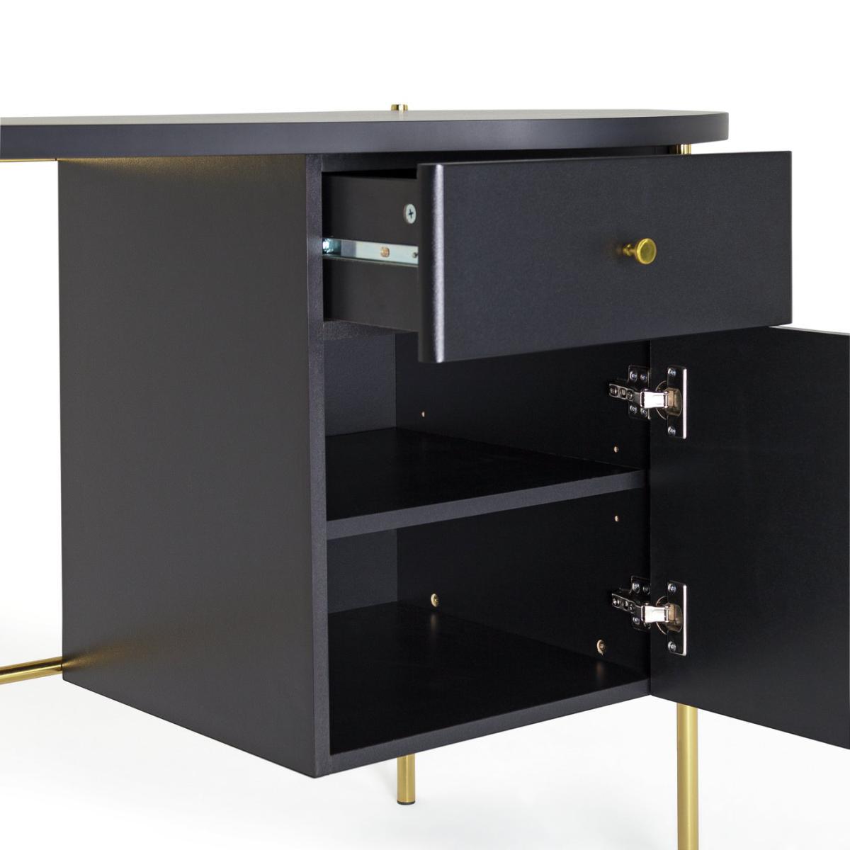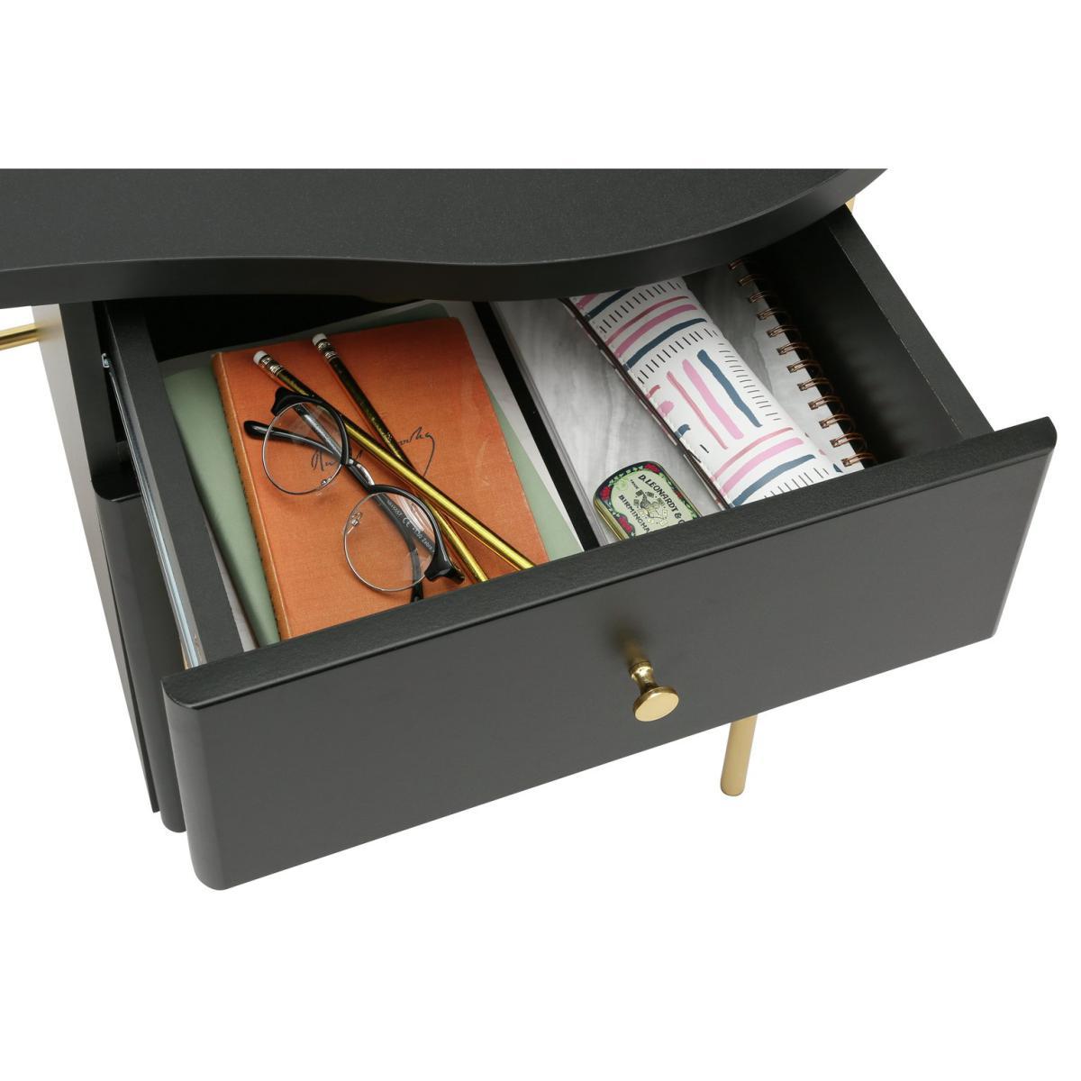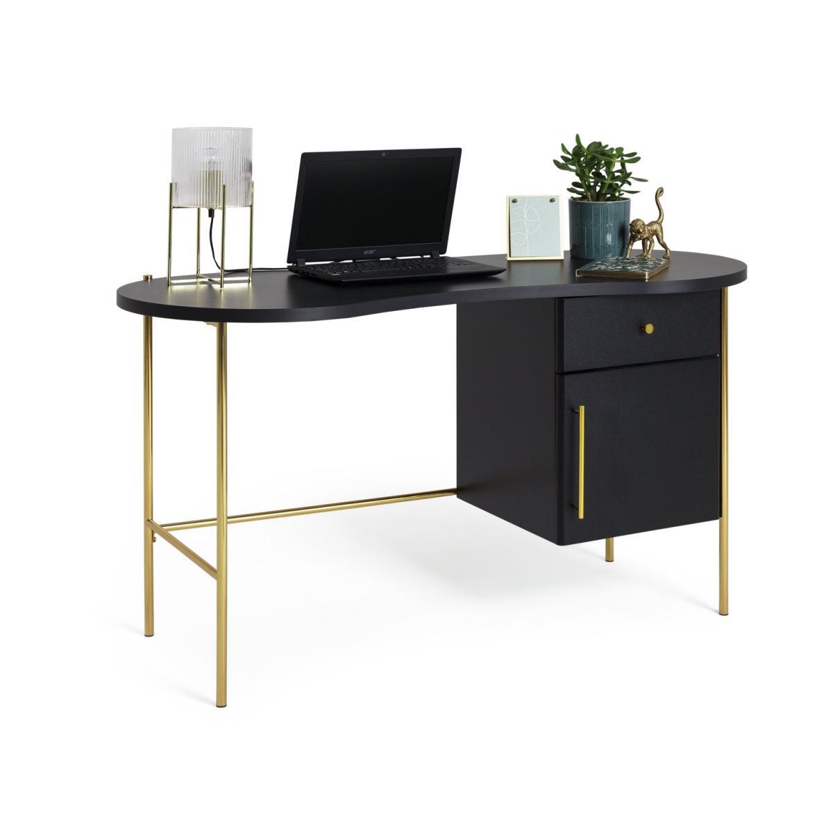 Full of beans. Our Habitat jelly bean desk will blow you away. For this desk design, we've definitely thought outside the box. Its quirky shape allows you to roll your office chair up close, so you can buckle down for the day. It's been built to be bold, with its glamorous combination of black and gold. Hide away stationery in the drawer and maybe a few files inside the storage cupboard. Show-stopping style? Tick.