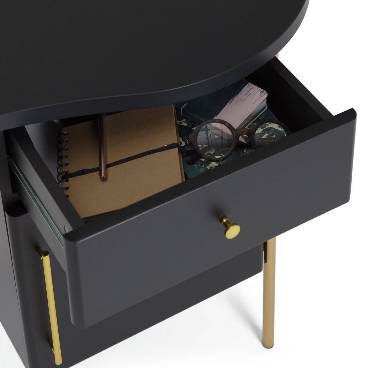 The Habitat 1 Drawer Jelly Bean Desk in black offers a sleek, modern look with its streamlined design and elegant gold accents, making it a versatile addition to many interiors. I love how it combines functionality with contemporary style, fitting well in both minimalist and luxe spaces. It’s perfect for home offices or creative nooks, especially when paired with simple, textured accessories or a pop of colour in surrounding decor to prevent it from feeling too stark. Practical styling tips include adding a decorative tray for organisation on the surface or balancing the gold hardware with accessories like metallic desk lamps or picture frames to enhance its sophisticated look. Its clean lines and understated elegance make it a timeless piece that can adapt as your interior evolves.