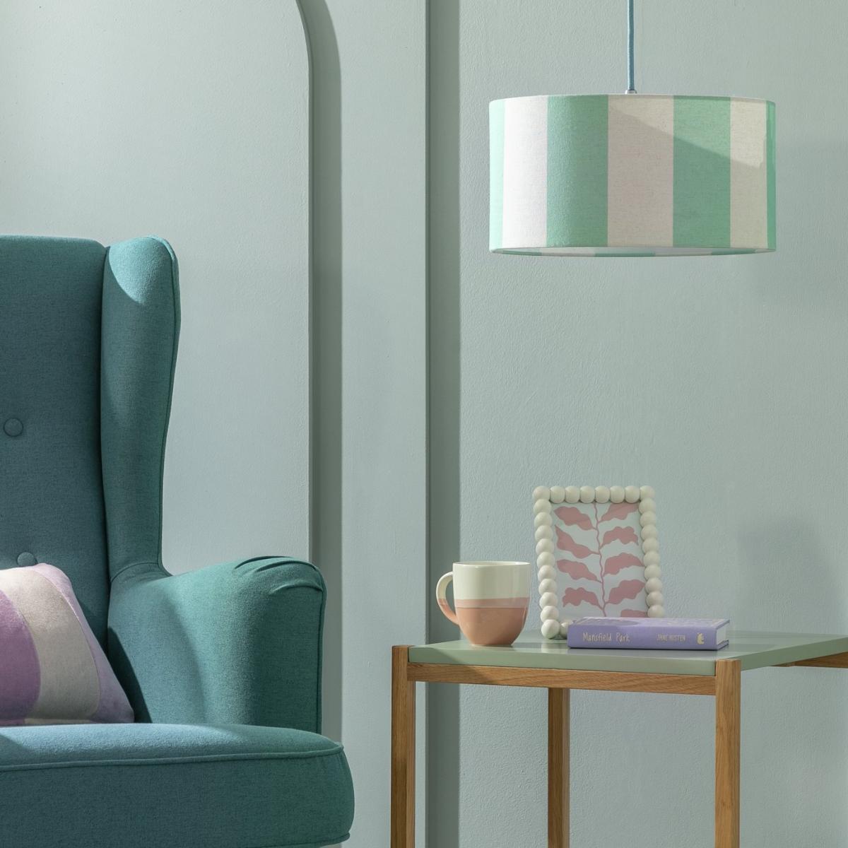 I love this stripe linen drum shade for its fresh, understated style and subtle colour palette. The mint stripe design adds a gentle pop of colour without dominating the space, making it versatile for various interior styles. It works particularly well in light, modern, or Scandinavian-inspired rooms where its clean lines and soft hues can complement neutral tones or pastel accents. For styling tips, try pairing it with metallic or wooden lamp bases to add texture, and keep surrounding decor simple to let the shade’s colour and pattern stand out. It’s a practical choice that adds character without overwhelming the overall look of a room.