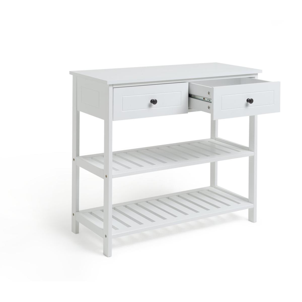 Slim, smart, stylish. This Habitat multi-purpose console table has 2 easy-glide drawers and 2 wide shelves, perfect for keeping things tidy and organised. It features decorative grooves and traditional metal handles. An excellent shoe rack, it works as a great hallway station, with room to store keys, gloves. But, who are we to tell you what to do, why not use it for your prized hat collection? Whatever you have in mind for this handy piece, we're sure it'll do a grand job of storing your belongings.