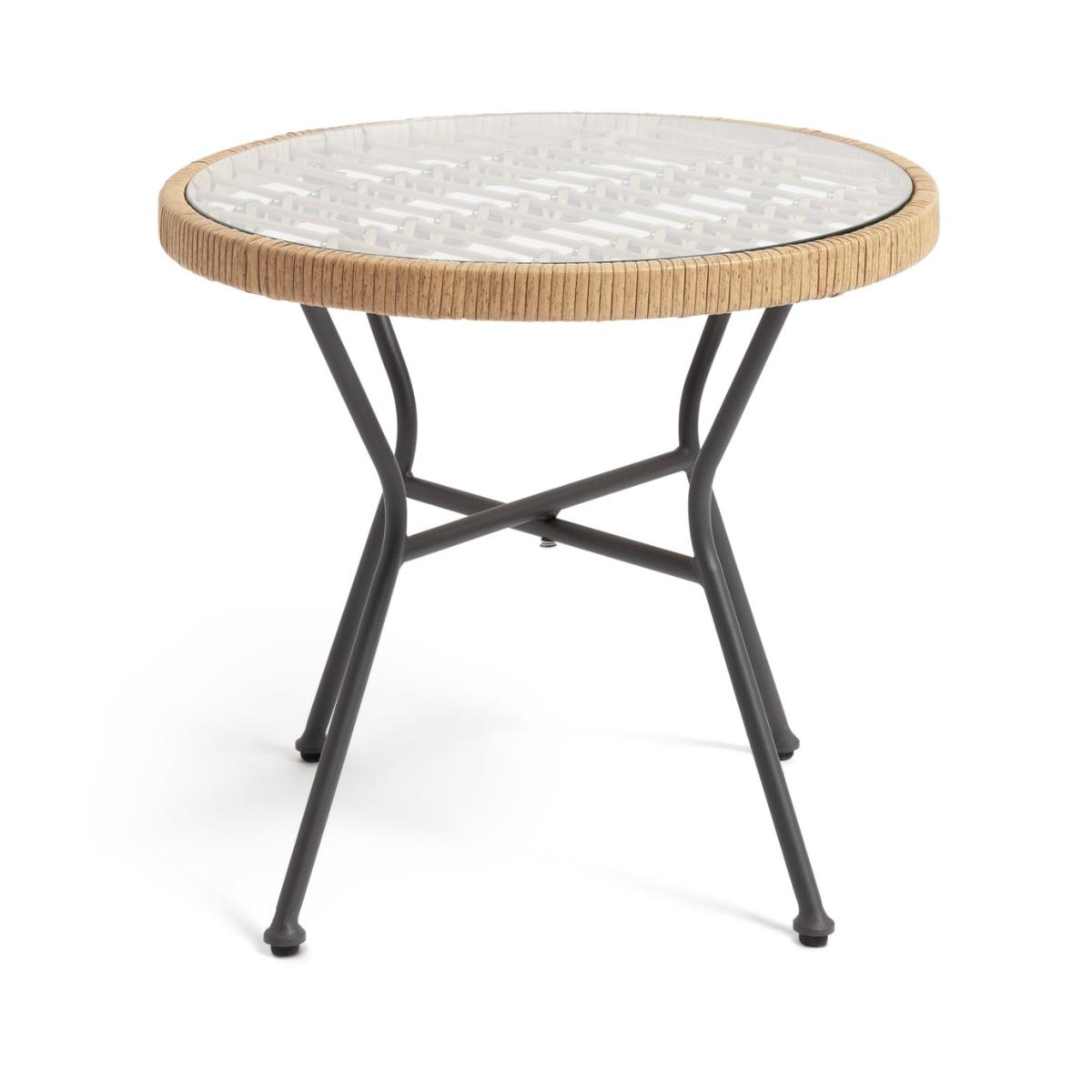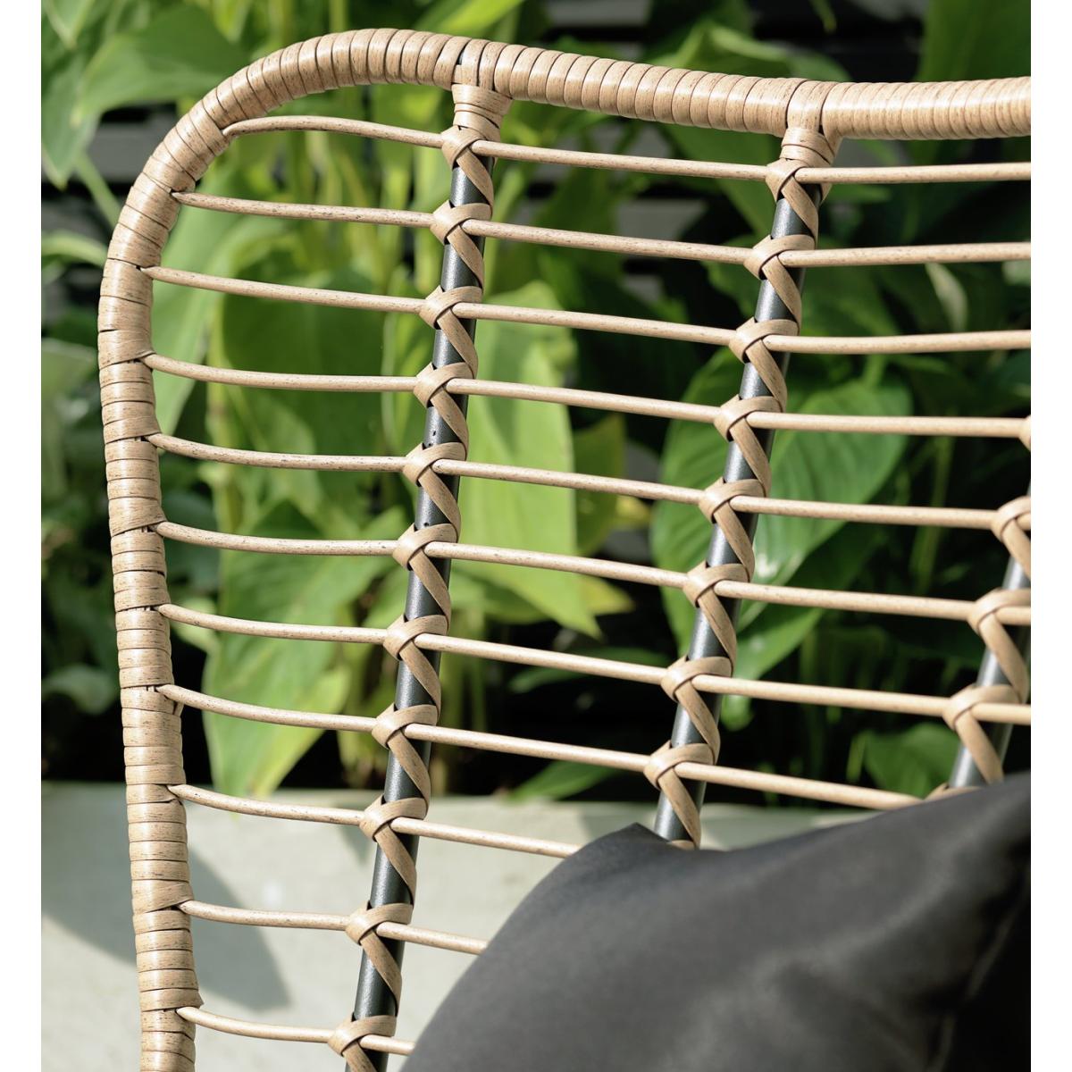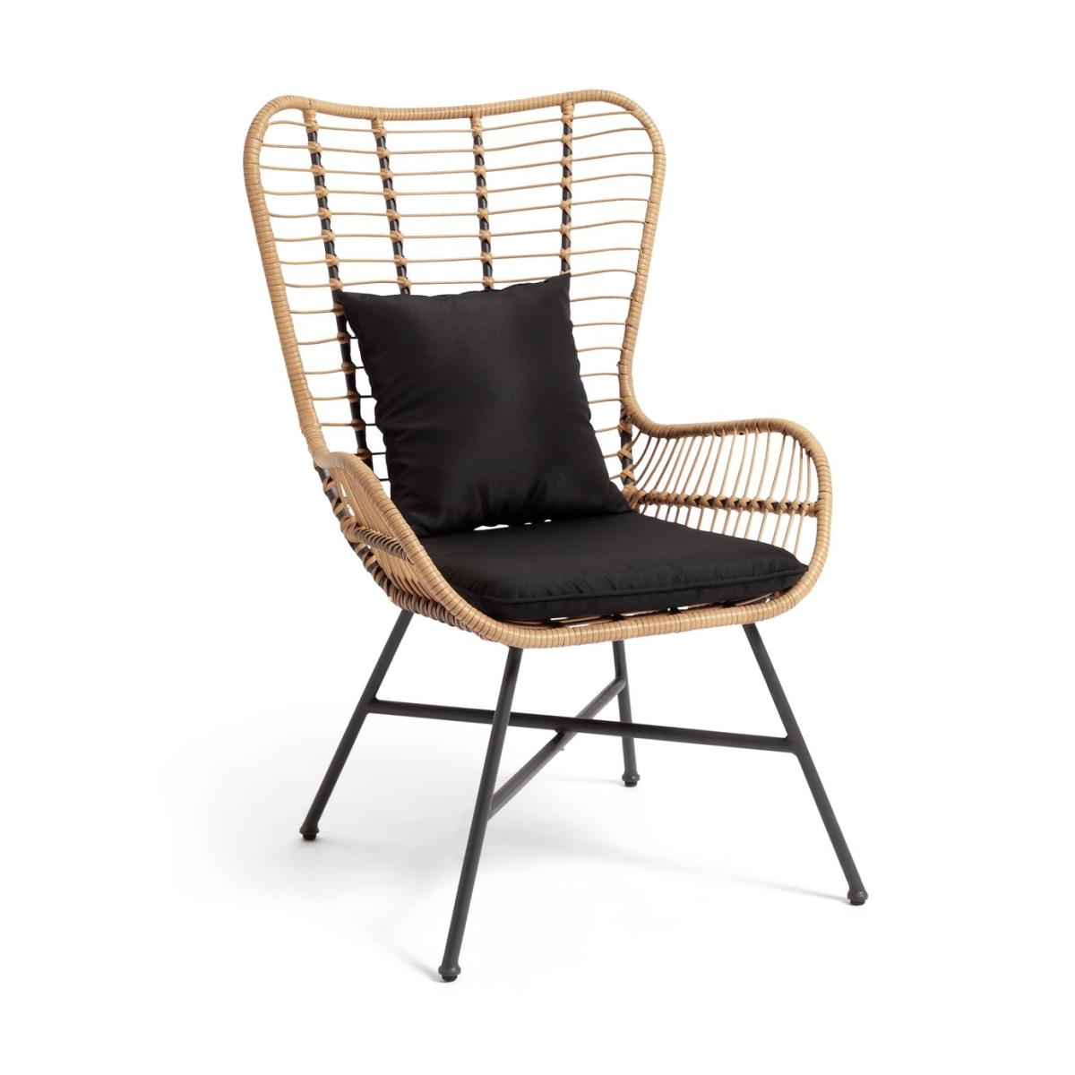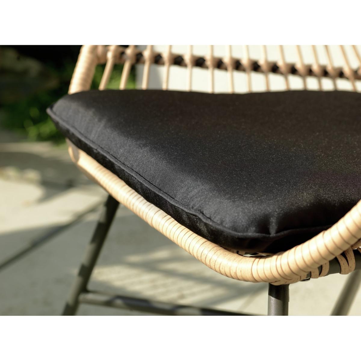 Charming, chic and oh so curvy. Claim your favourite corner of the patio or balcony for this Boho inspired bistro set. You'll be curled up for hours. The natural rattan effect armchairs offer ergonomic comfort, and contrast beautifully with the striking metal black legs. Designer black cushions finish the look. Stunning meets practical. The glass topped coffee table makes it easy to wipe and all covers are machine washable so they clean up nicely too. Morning coffee, afternoon tea, prosecco evenings? Any excuse!