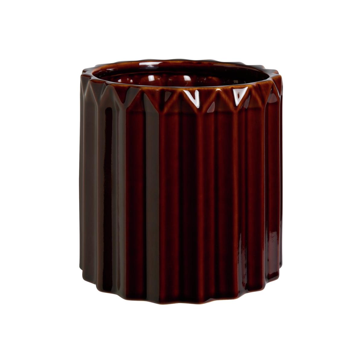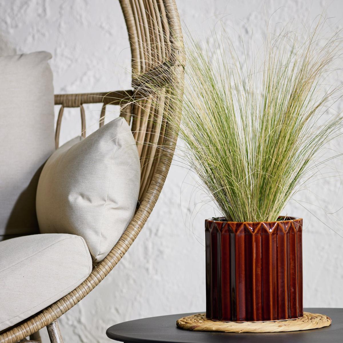 Glossy and gorgeous. Crafted from stoneware with an antique bronze glaze, this retro inspired glass faceted ribbed planter is a beautiful base for fresh or faux foliage. Frost resistant, with drainage holes it also makes a perfect patio pot. Made from ceramic. Frost resistant. Fade resistant. Rust resistant. Drainage holes. Capacity: 6 litres. Size H20, W20, D20cm, Diameter 20cm. Weight 2.5kg. Size of large planter H20, W20, D20cm, Diameter 20cm. Basket size H18.5, W17.5, D17.5cm. Weighted for stability.