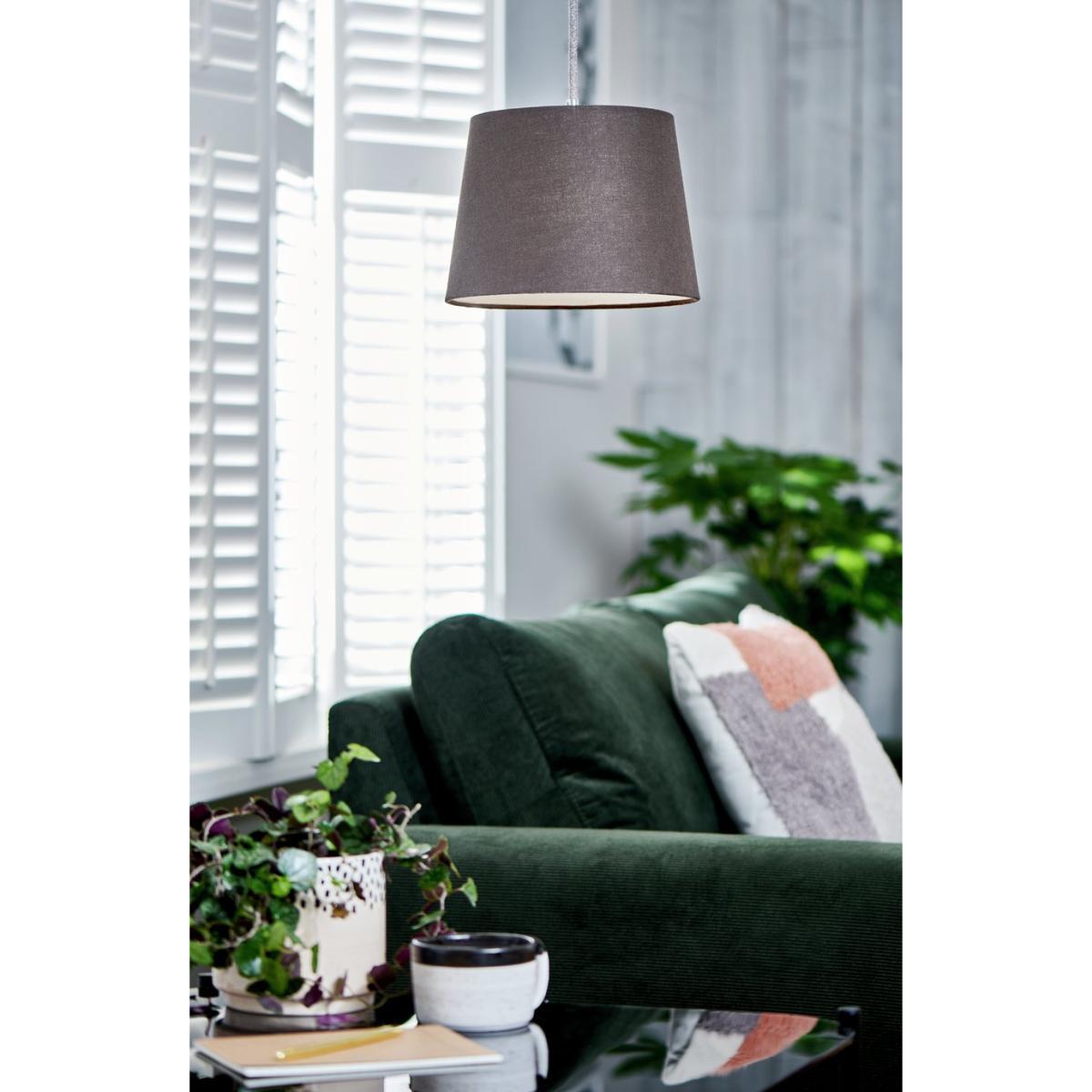 Set the stage. This textured fabric taper shade in on-trend charcoal will add a dramatic focal point to your room - even when it's off. The easy-to-fit, H18cm x Diameter 25cm, shade comes with a handy reversible gimbal. So, it's just as happy hanging from your bedroom celling or luxuriating on a table lamp in the lounge. For an instant style upgrade, this simple but chic shade adds maximum wow with minimum effort.